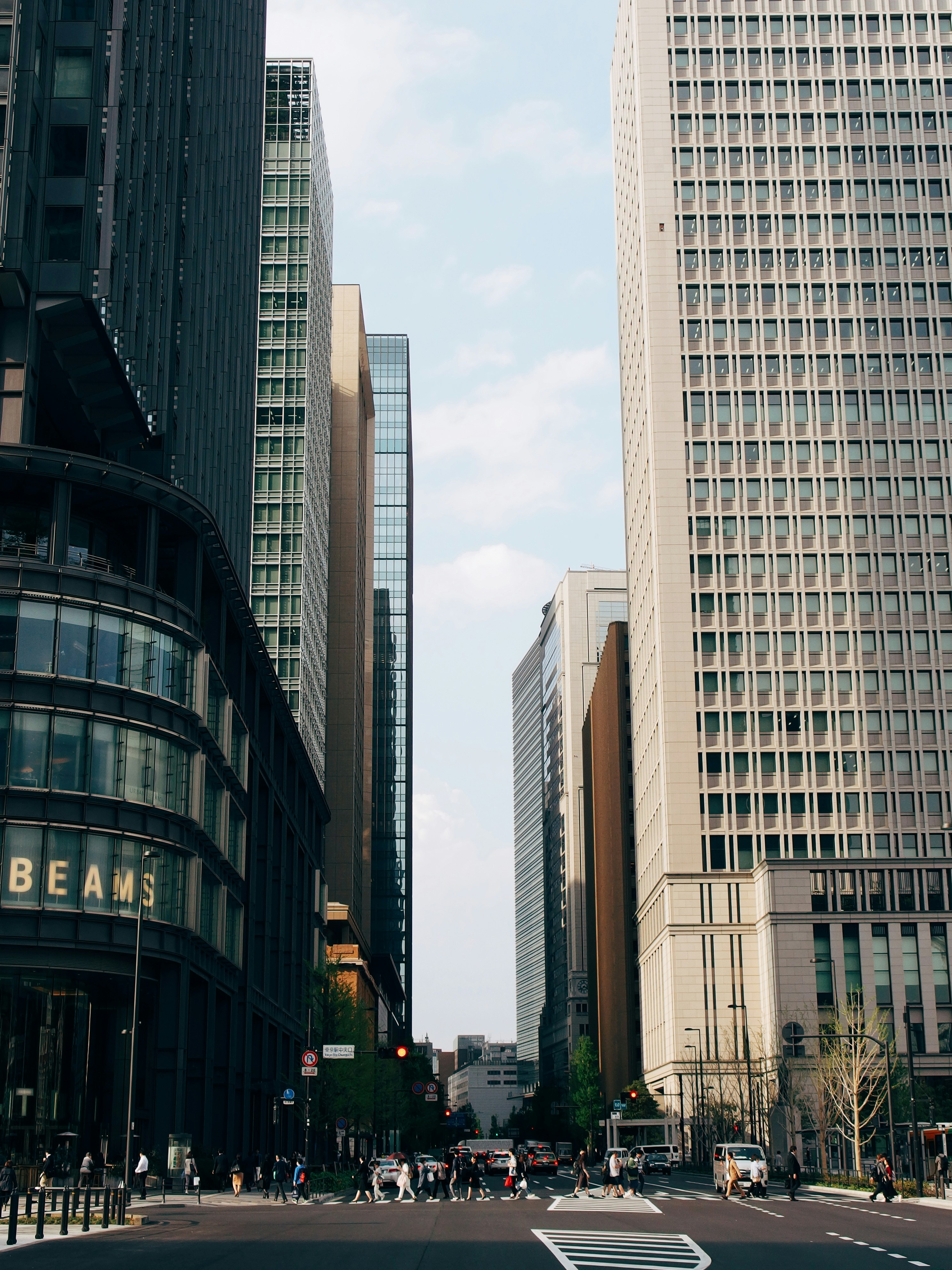 People Crossing On Road Between Black Concrete Building Photo Free Building Image On Unsplash