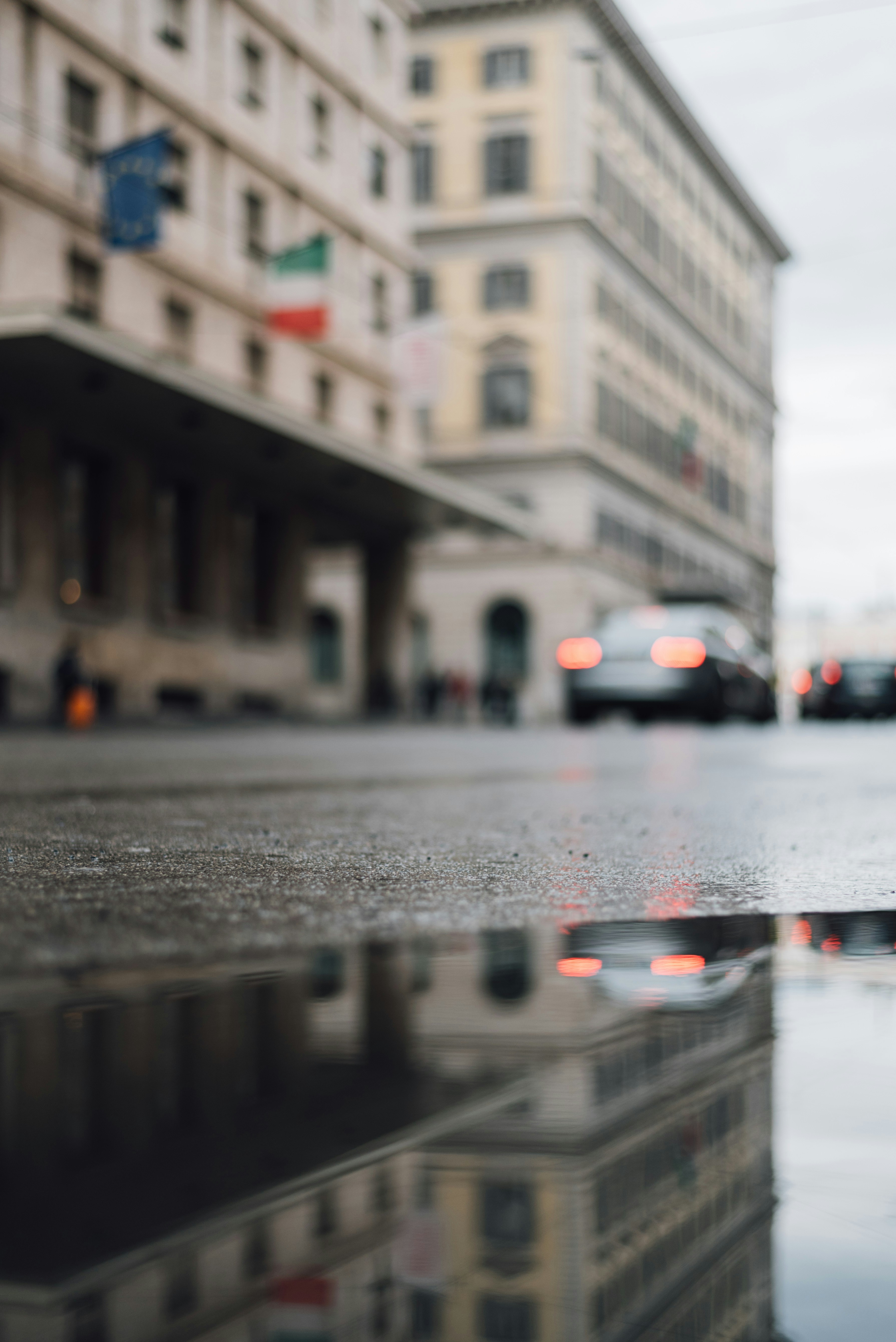 Water Puddle On Road Near Concrete High Rise Buildings Photo Free Car Image On Unsplash