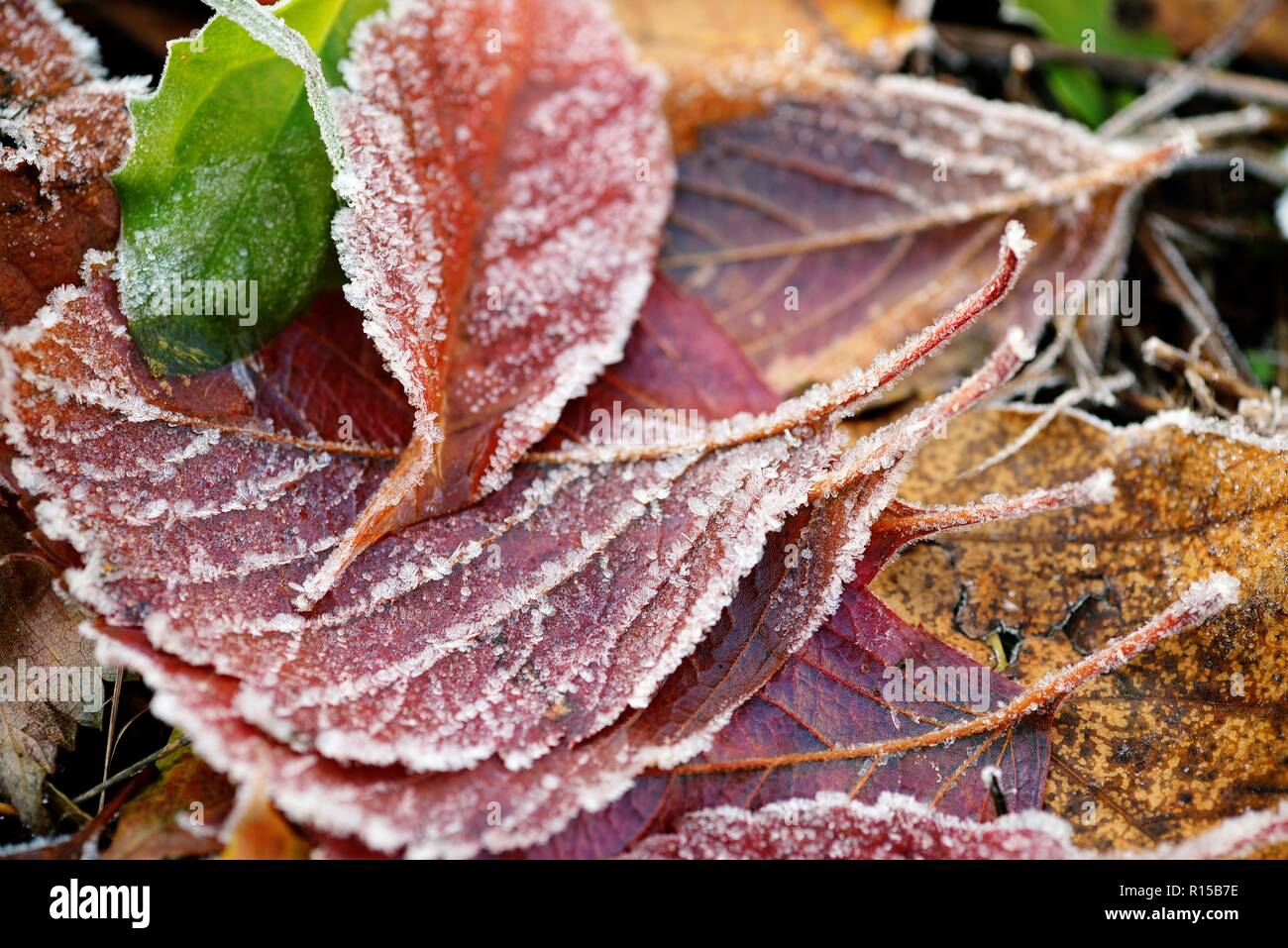 Frozen Autumn Natural Close Up Colorfull Red Green Yellow Leaves