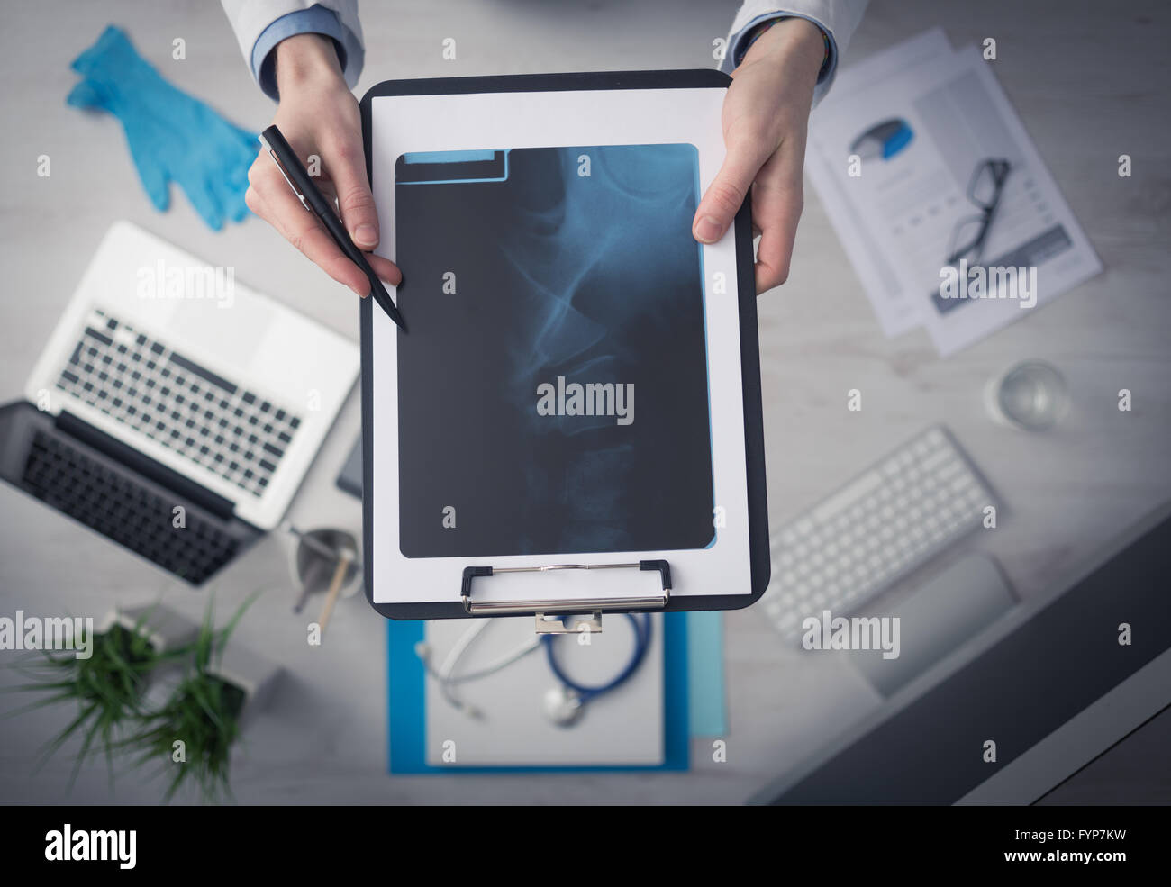 Radiologist Cheching An X Ray Image Of Human Spine Hands And