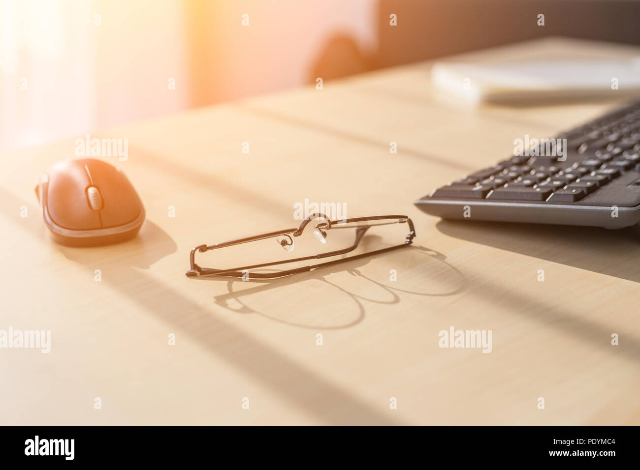 Closeup Of Laptop Glasses Coffee Cup And Other Items On White