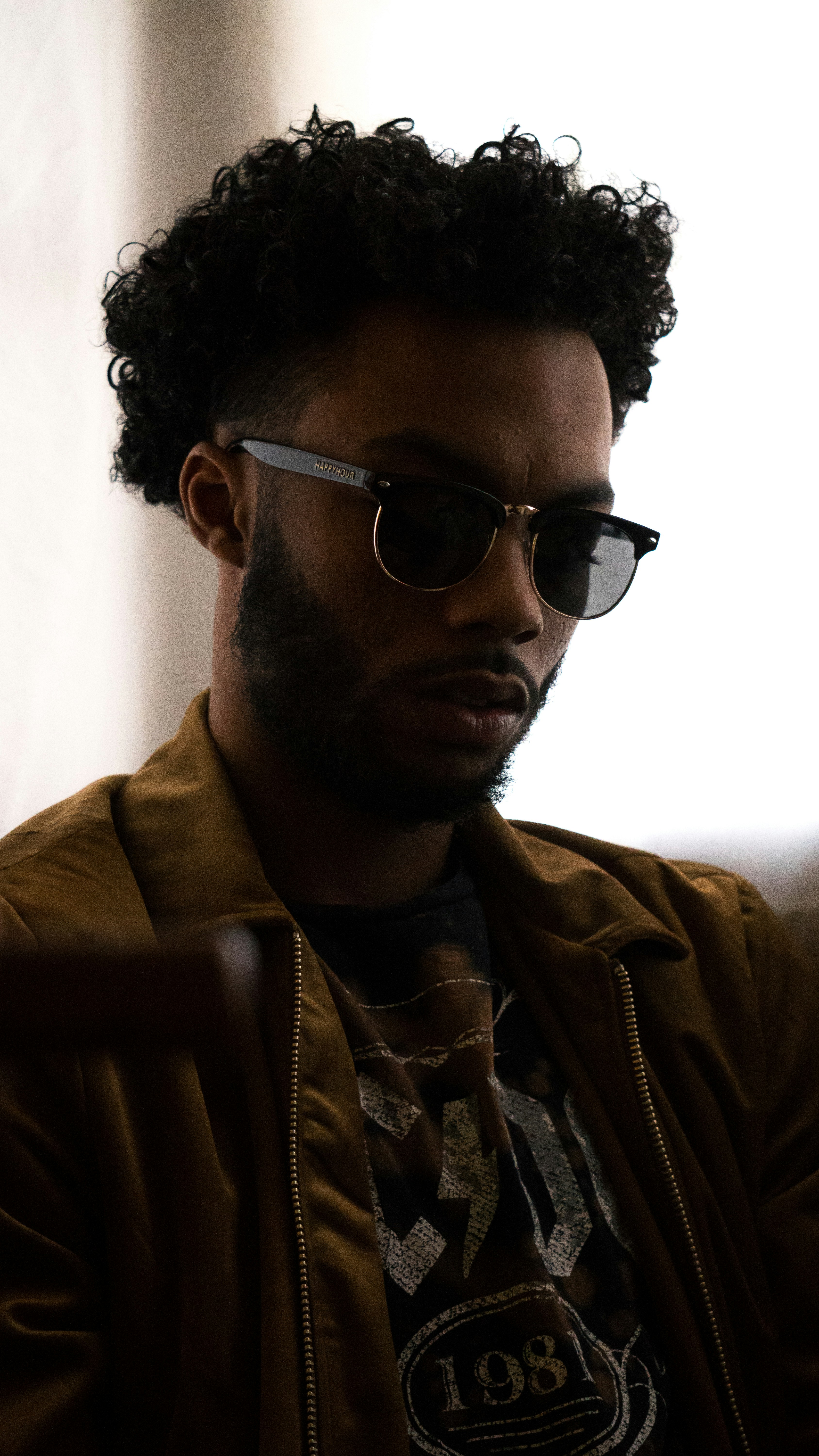 Man With Clubmaster Sunglasses Wearing Brown Jacket Photo Free