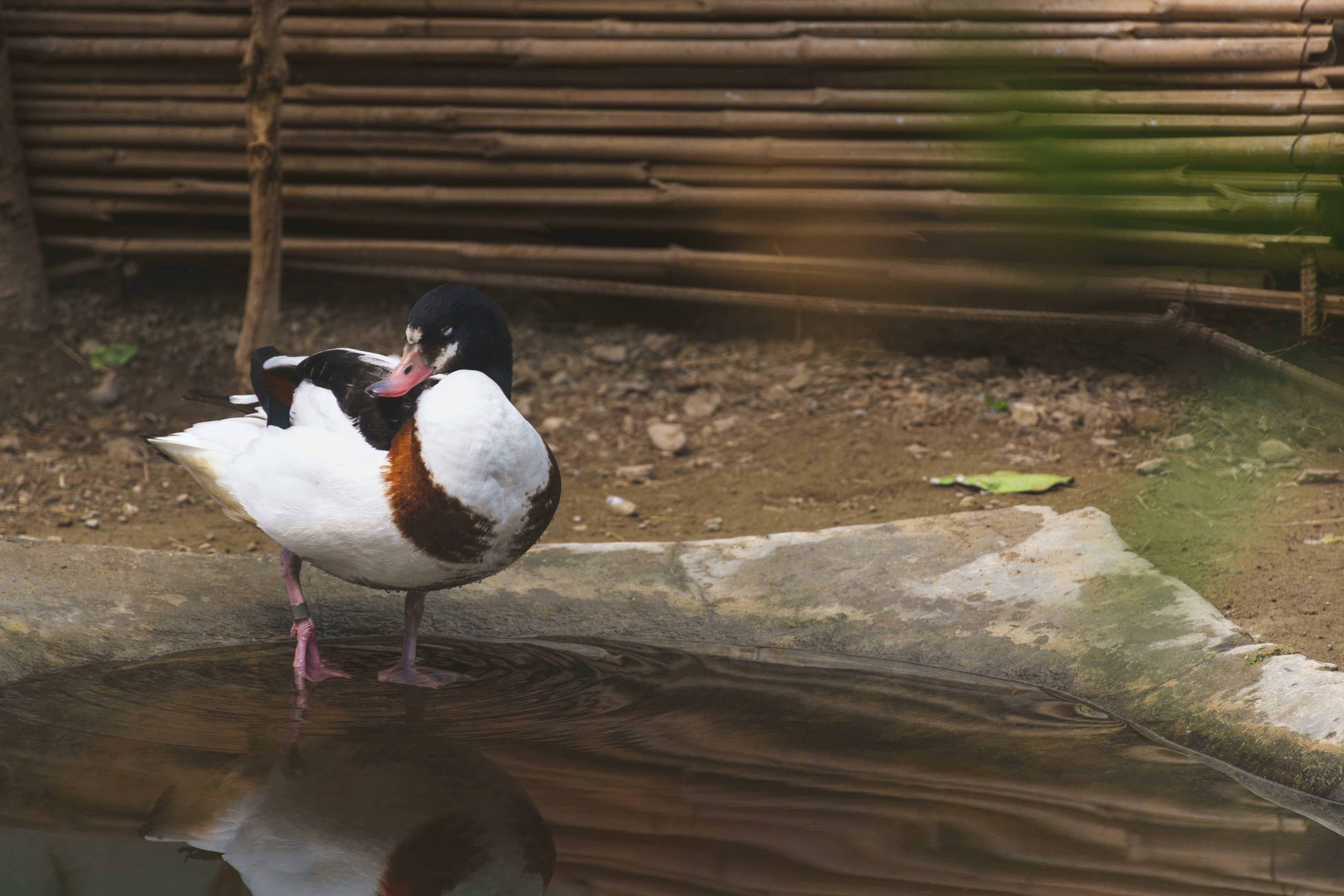 White And Brown Duck On Body Of Water Near Brown Fence Photo