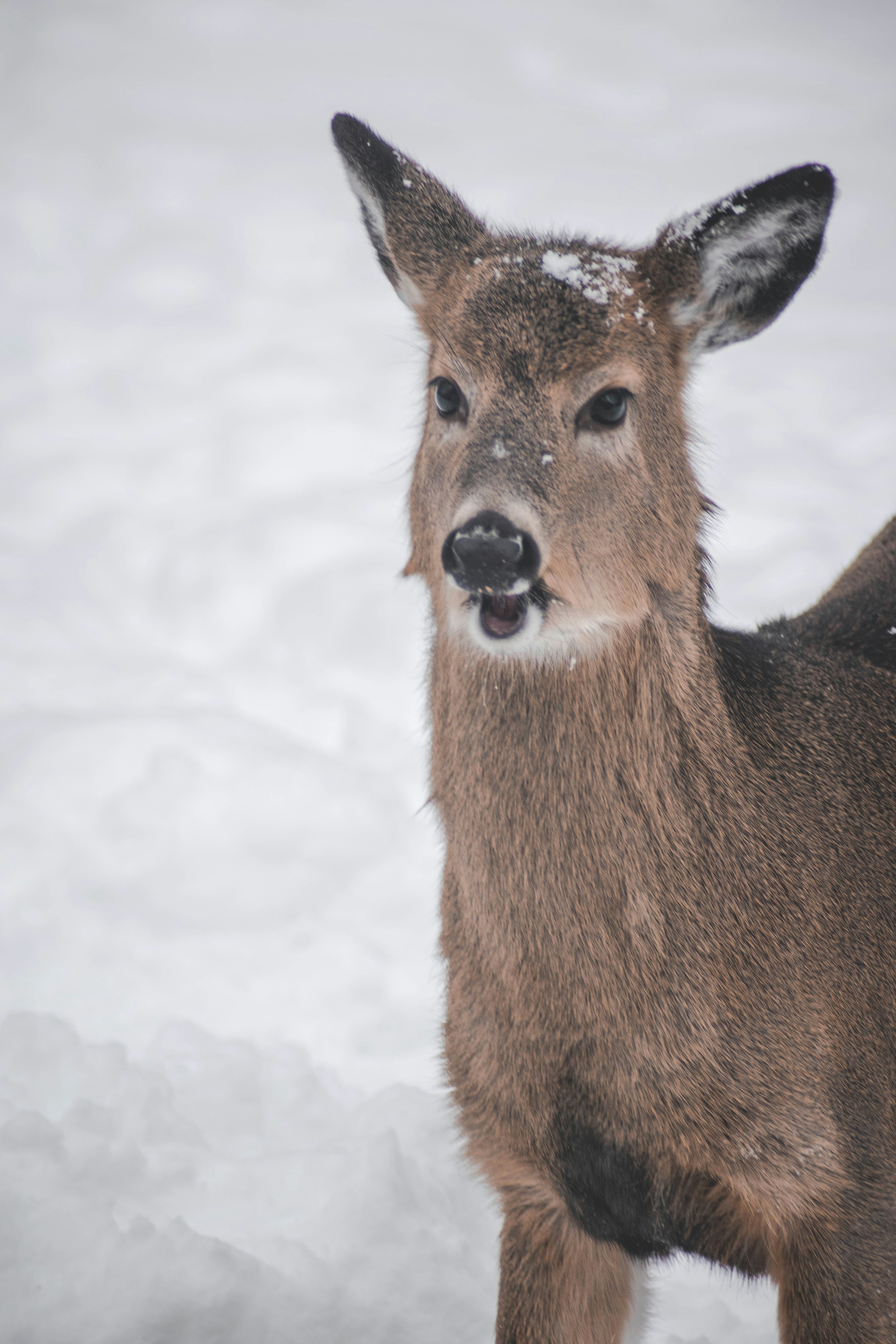 Selective Focus Photography Of Brown Deer On Snow During Daytime