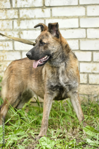 Brown And White Long Coated Puppy Running In The Middle Of Green