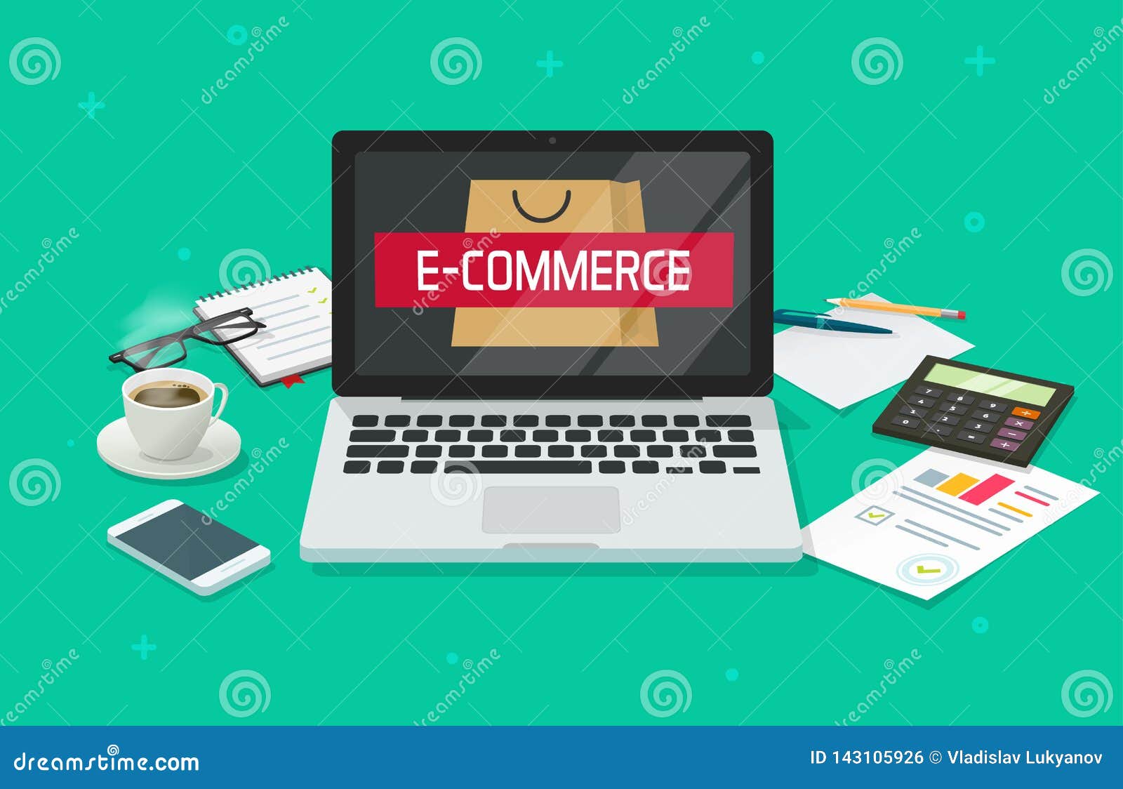 E Commerce Store On Laptop Person Working On Computer Analyzing