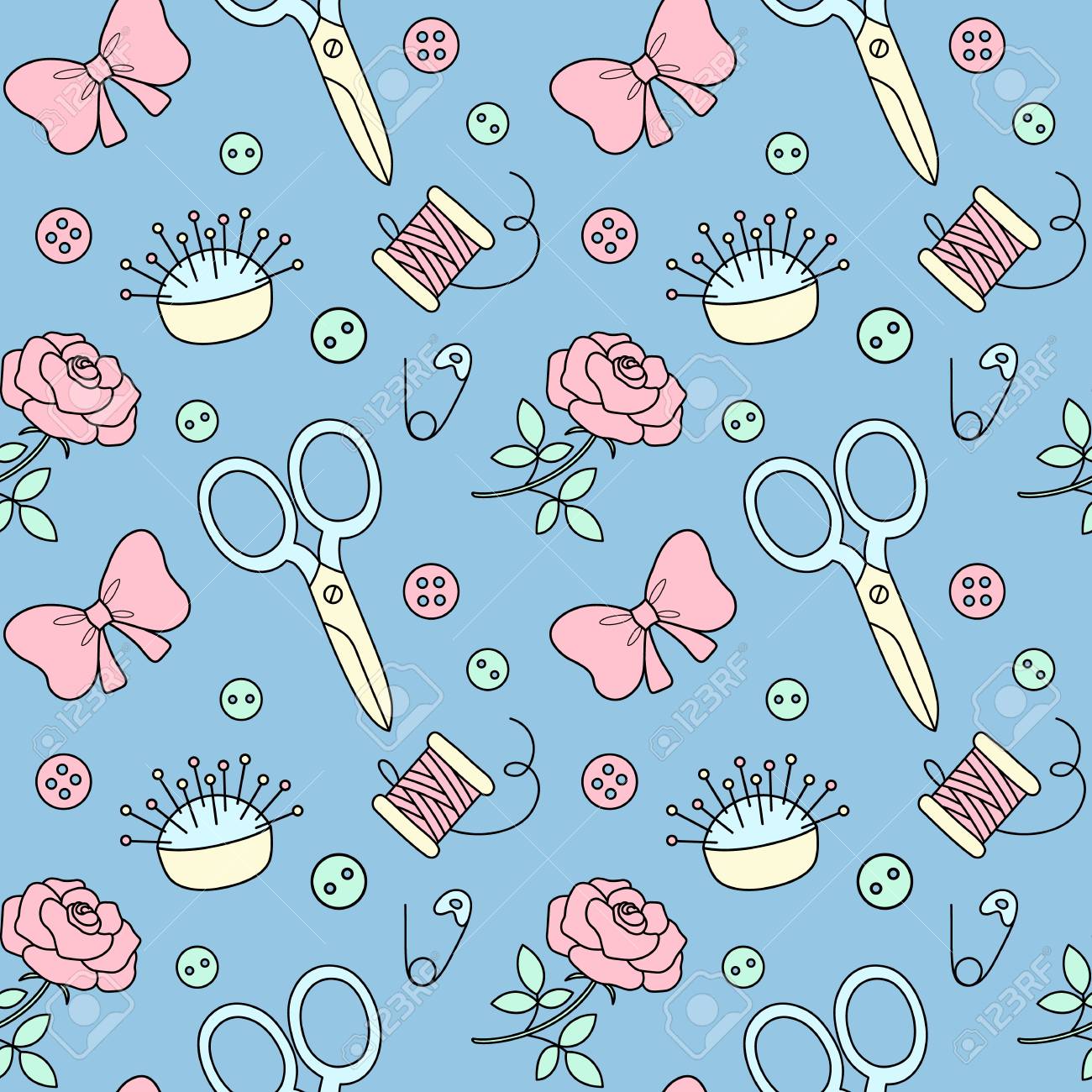 Seamless Pattern With Hand Drawn Sewing Doodle Fashion Background