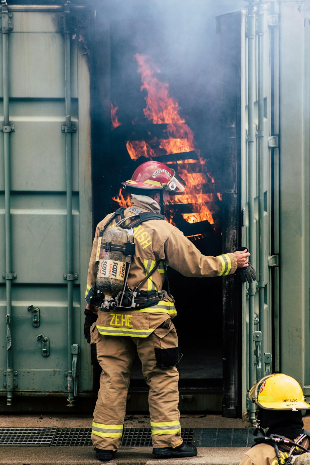 Fireman Looking At Fire Photo Free Helmet Image On Unsplash