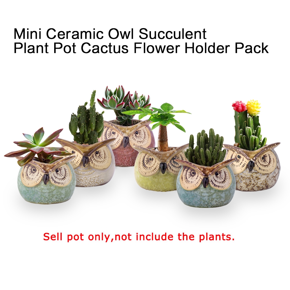 Oval Desktop Bonsai Pot Flower Brow Owl Planter Miniatures Office