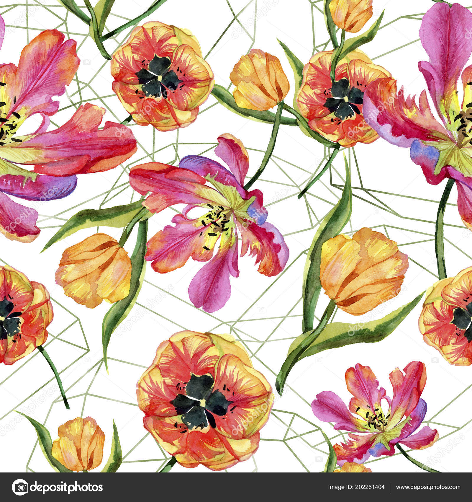 Colorful Summer Tulip Floral Botanical Flower Seamless Background