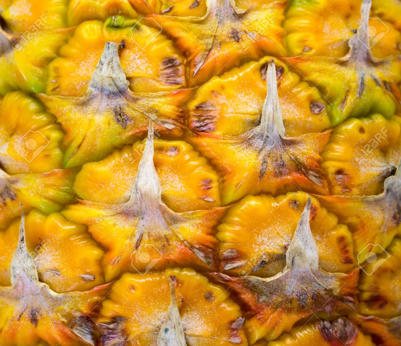 Pineapple Surface Close Up Macro Photo Of Orange Exotic Fruit