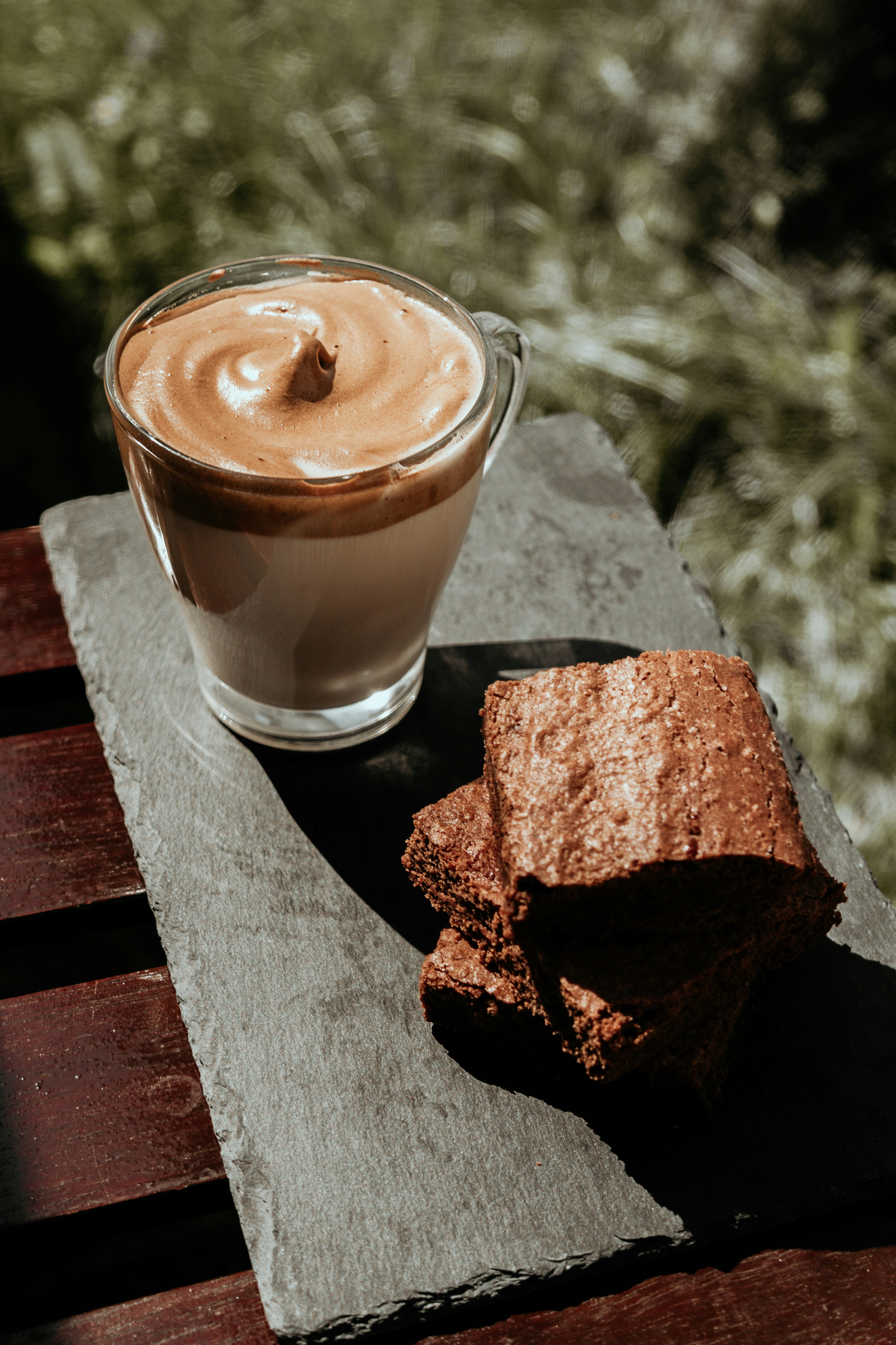 Clear Drinking Glass With Brown Liquid On Brown Wooden Table Photo