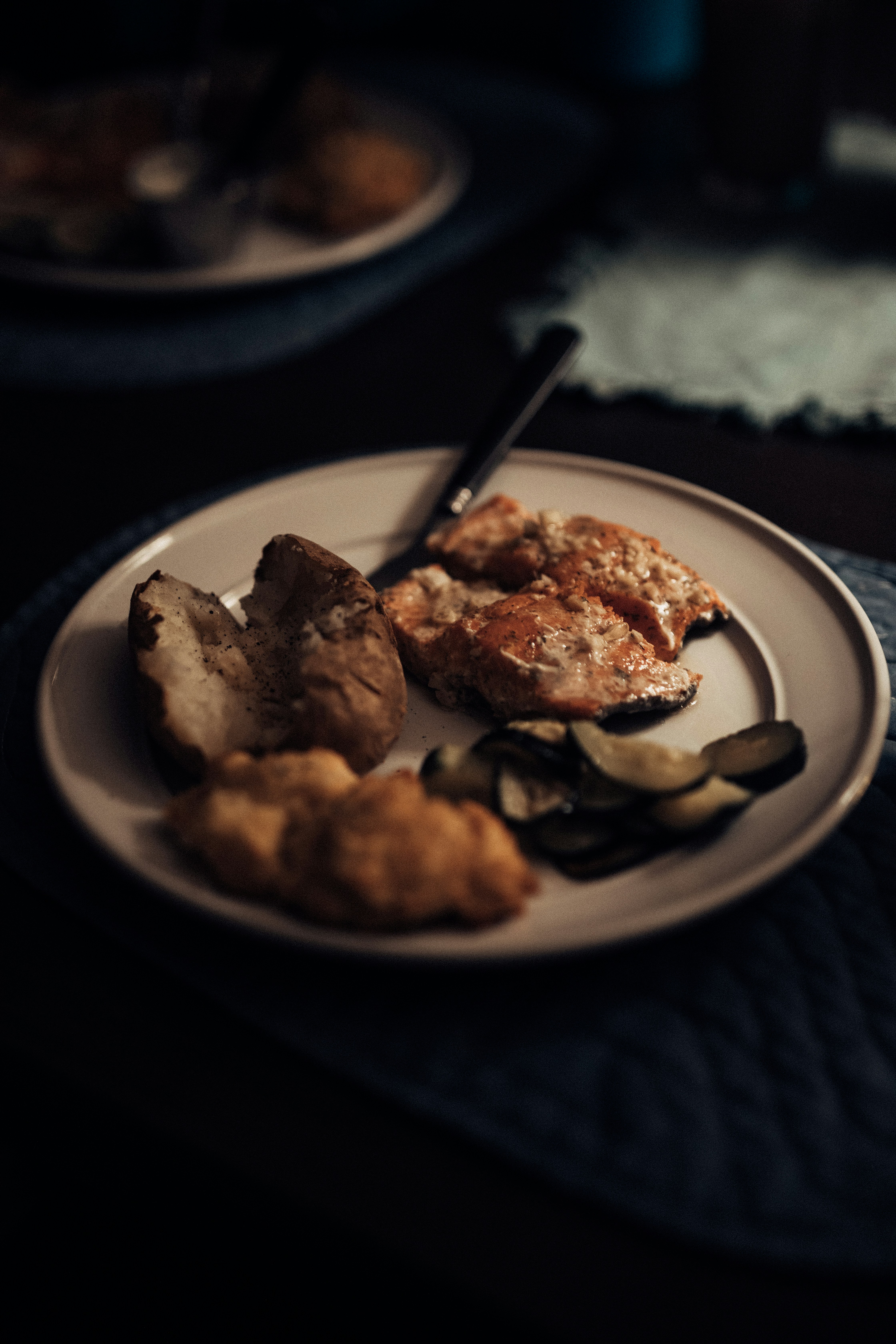 Grilled Meat In White Round Ceramic Plate Photo Free Dish Image