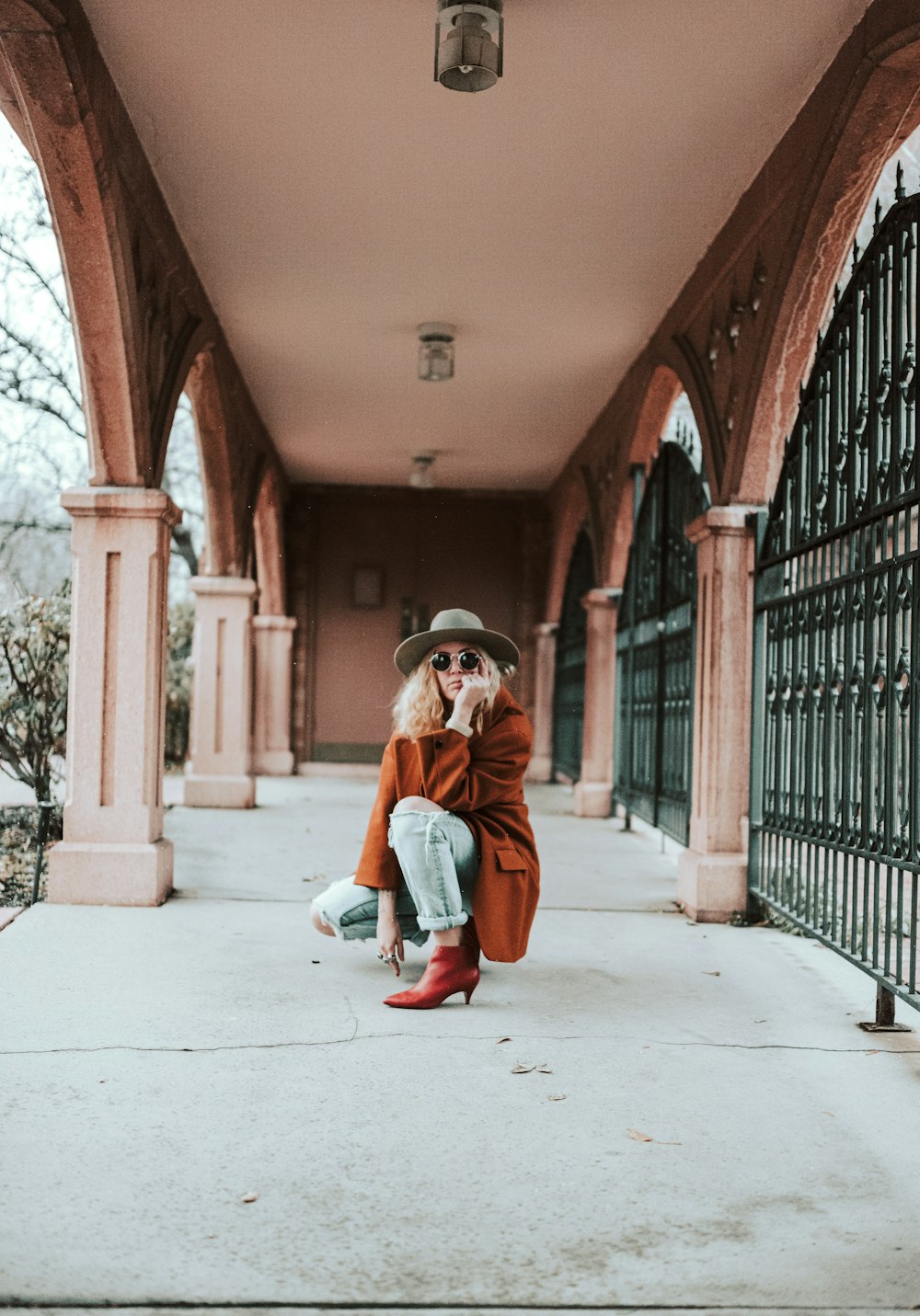 Hd Wallpaper Girl Wearing Brown Coat Leaning On Concrete Pillar