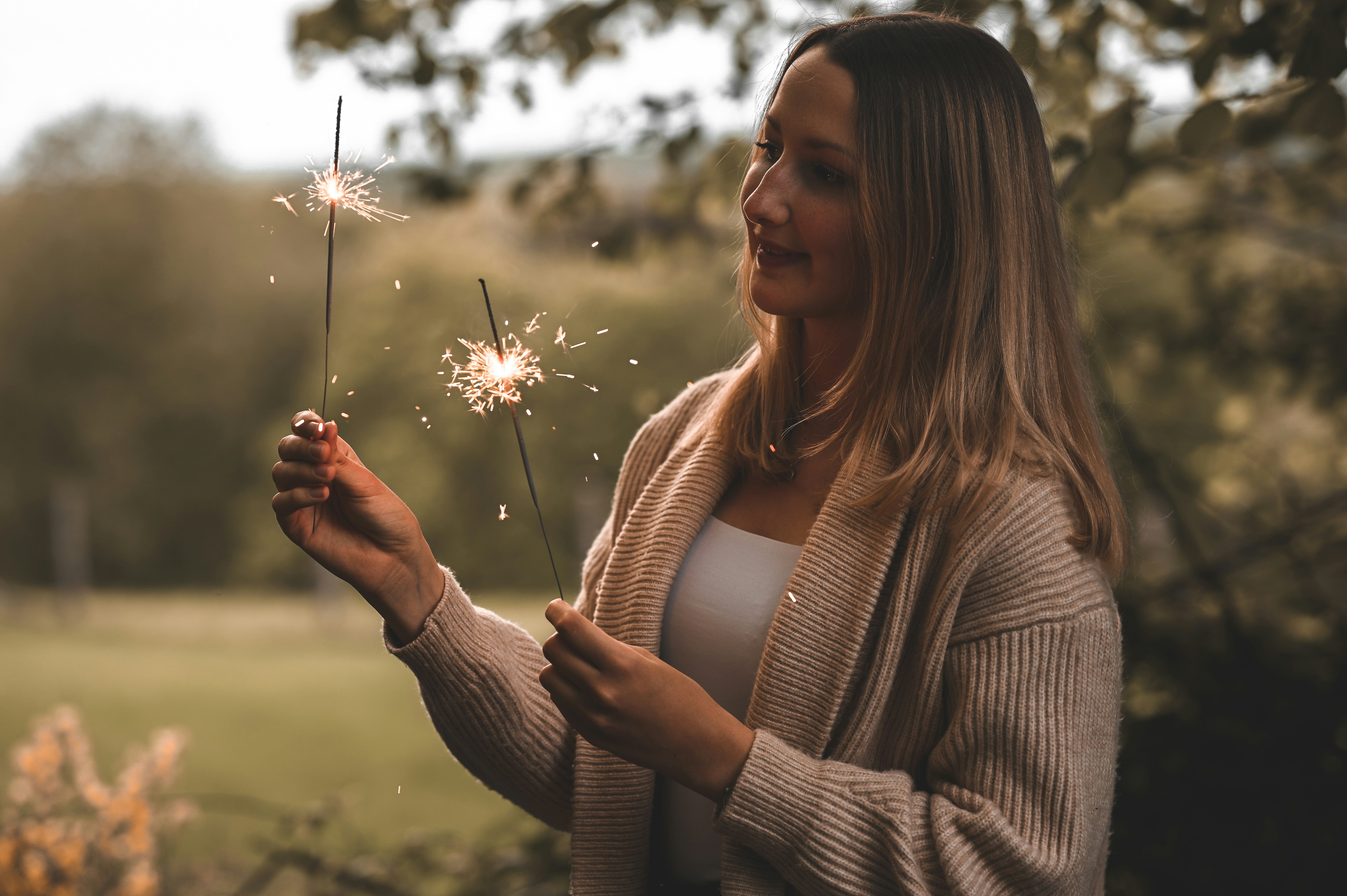 Woman In White Knit Sweater Holding White Dandelion Flower During