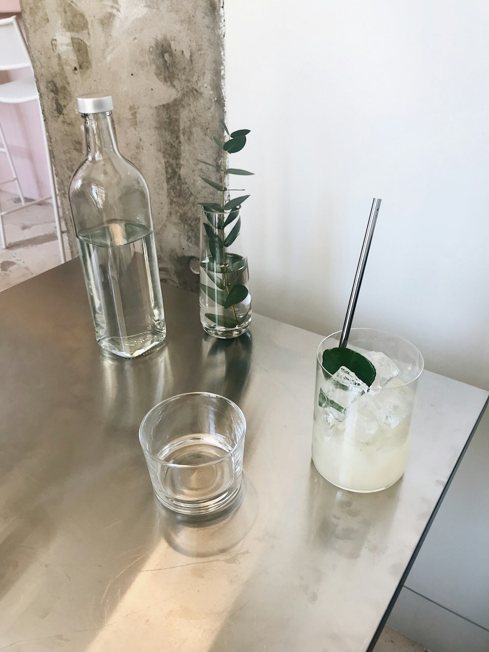 Rocks Glass Beside Half Empty Bottle On White Surface Photo Free