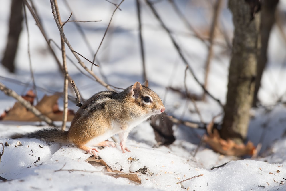Gray And White Squirrel At Snow Covered Ground Free Stock Photo