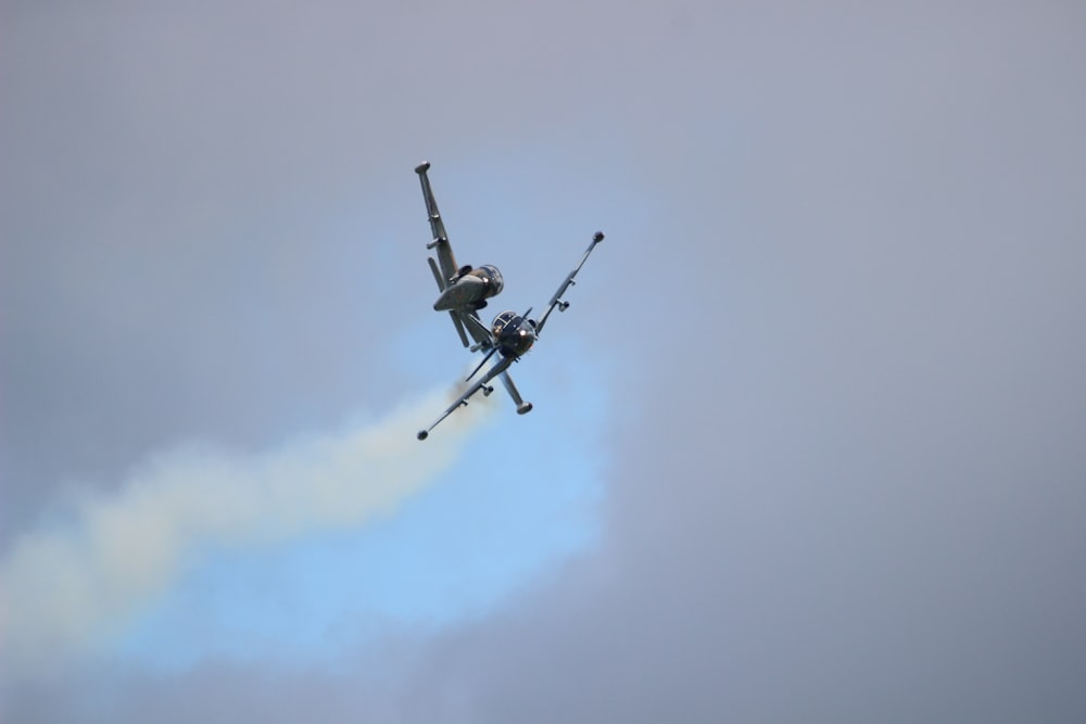 Gray Jet Plane Flying Under Clear Blue Sky Photo Free Smoke