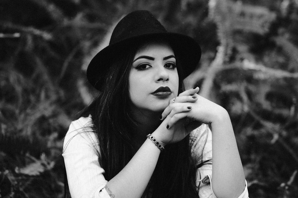 Grayscale Photo Of Woman Wearing Black Hat Free Stock Photo