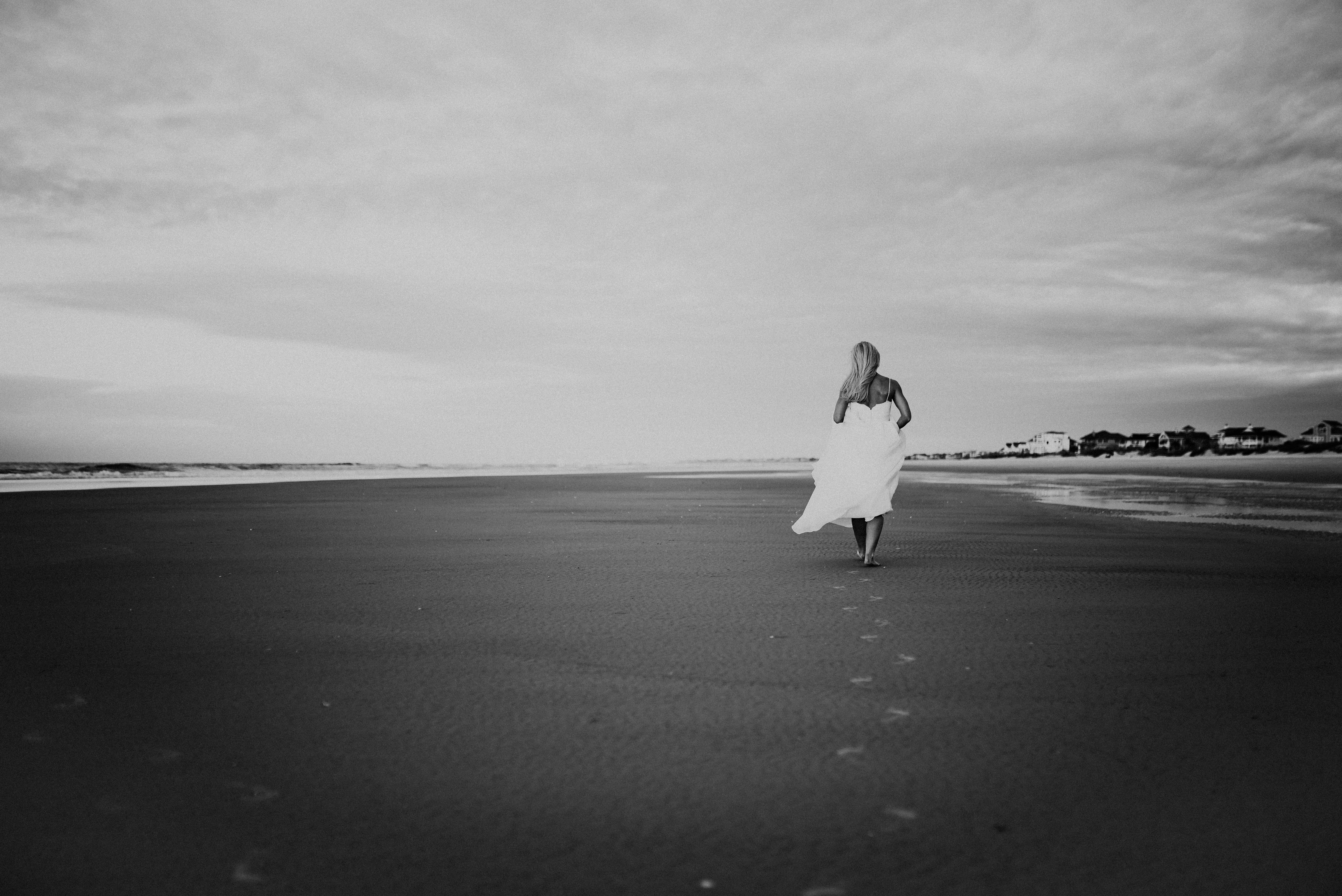 Woman Along Dry Seashore In Beach Grayscale Photo Free Image Peakpx