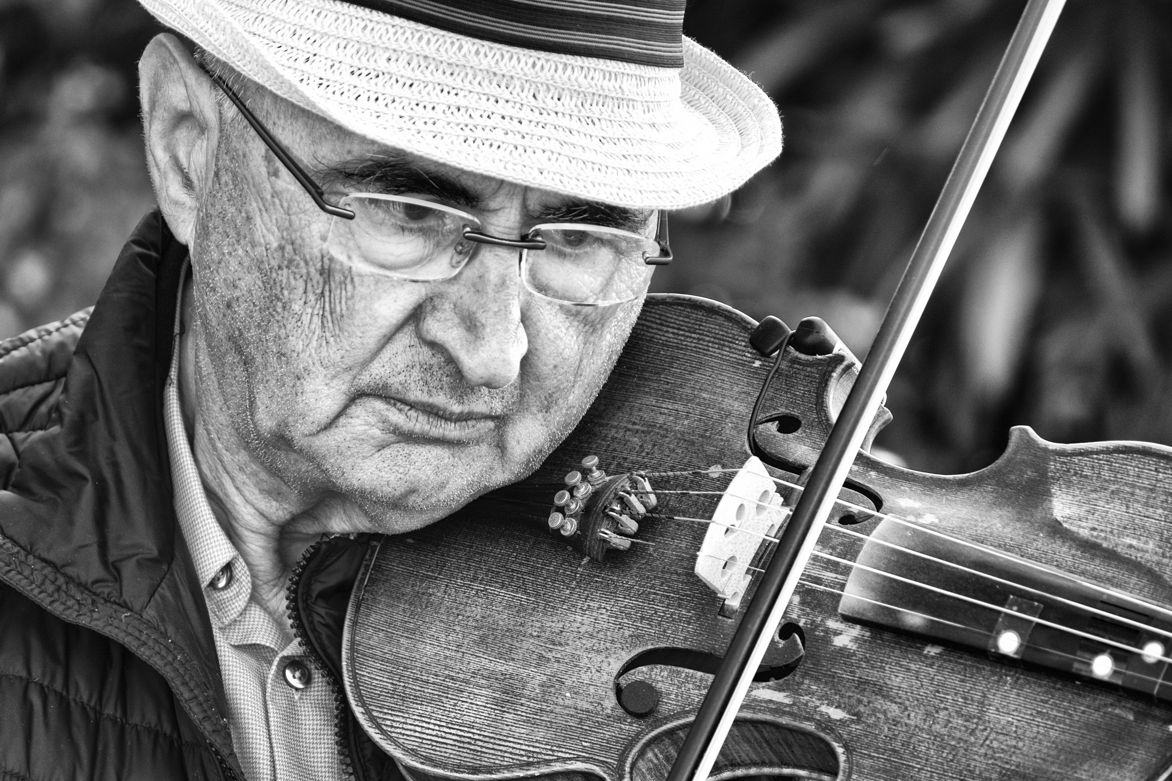 Grayscale Photography Of Man Playing Violin Photo Free Human