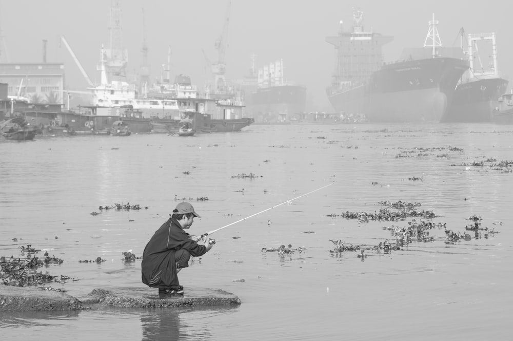 Grayscale Photo Of Man Throwing A Fishing Net Free Stock Photo