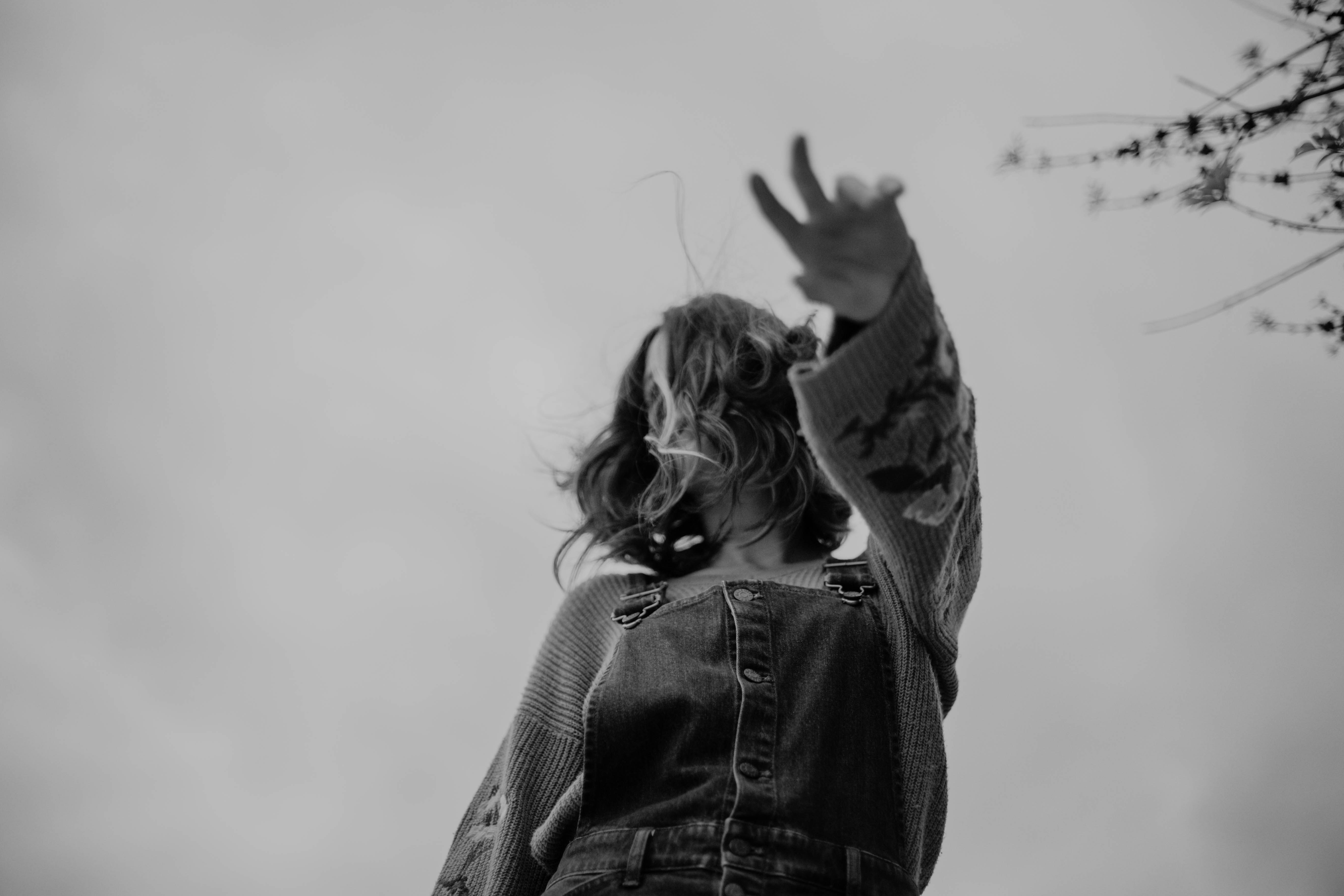 Grayscale Photography Of Woman Wearing Overalls Photo Free Black