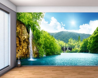 Waterfall Sunlight Lake Large Wall Mural Self Adhesive Etsy