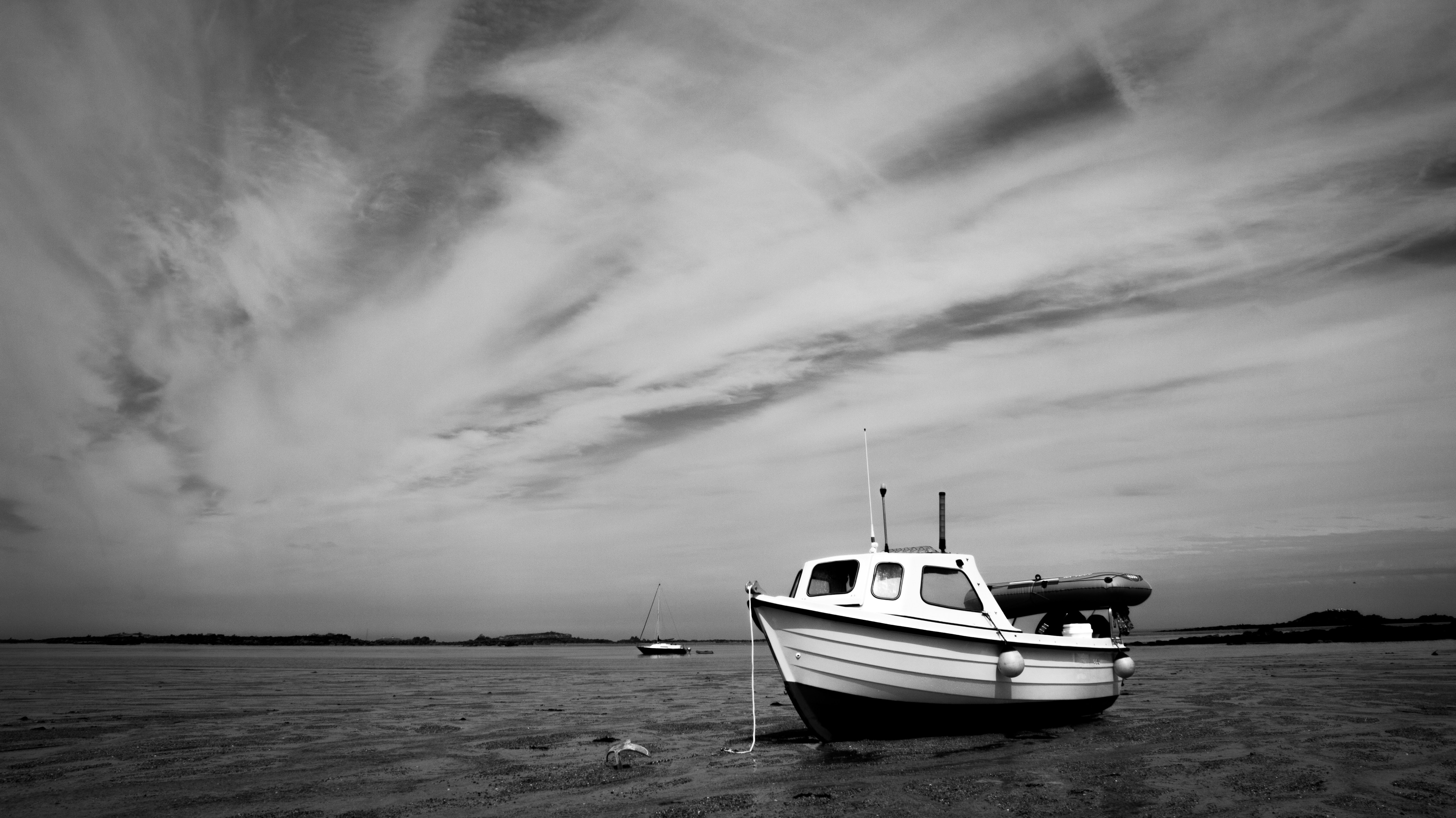 Shipwreck Scene Grayscale Photo Of Female Posing Near Seashore