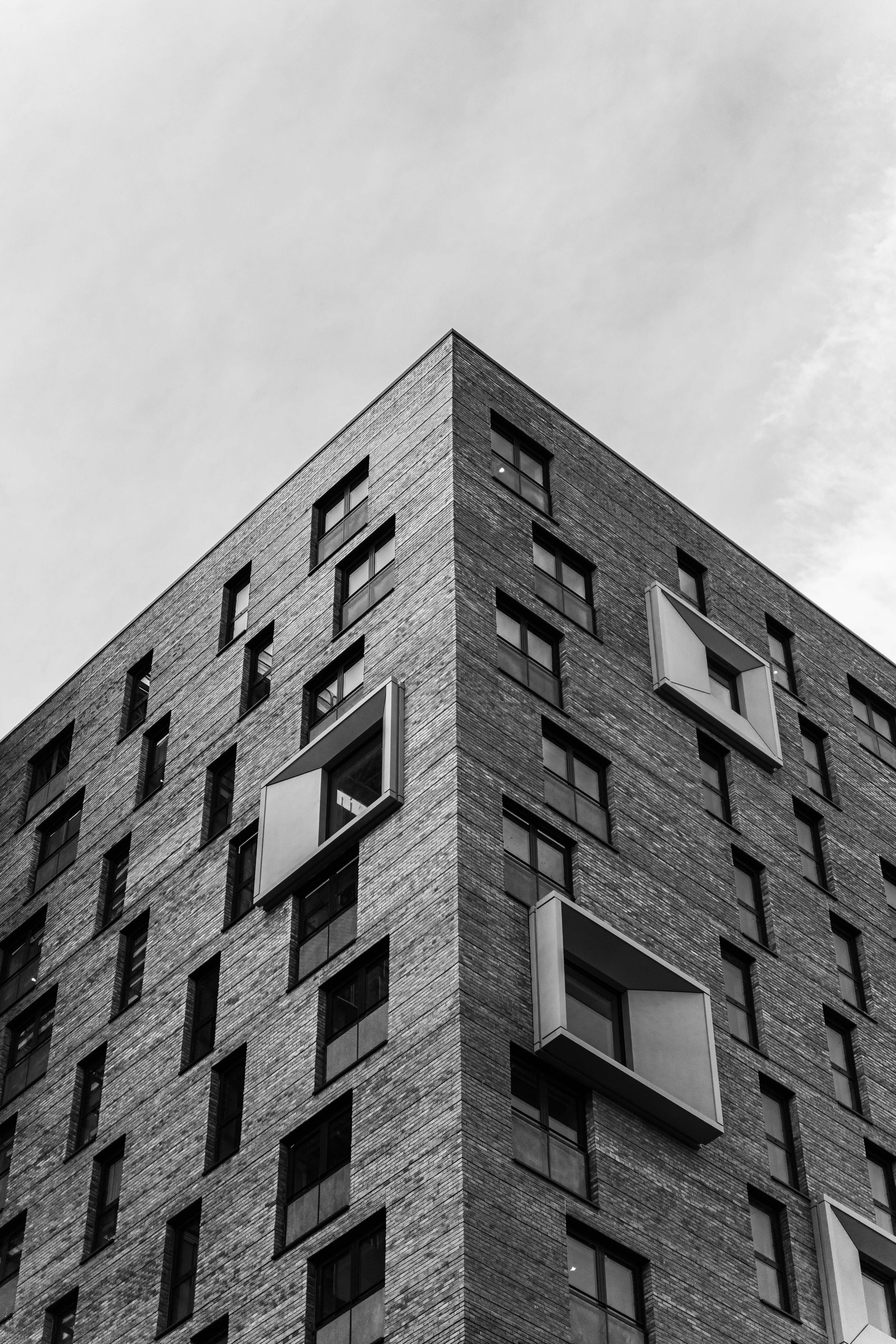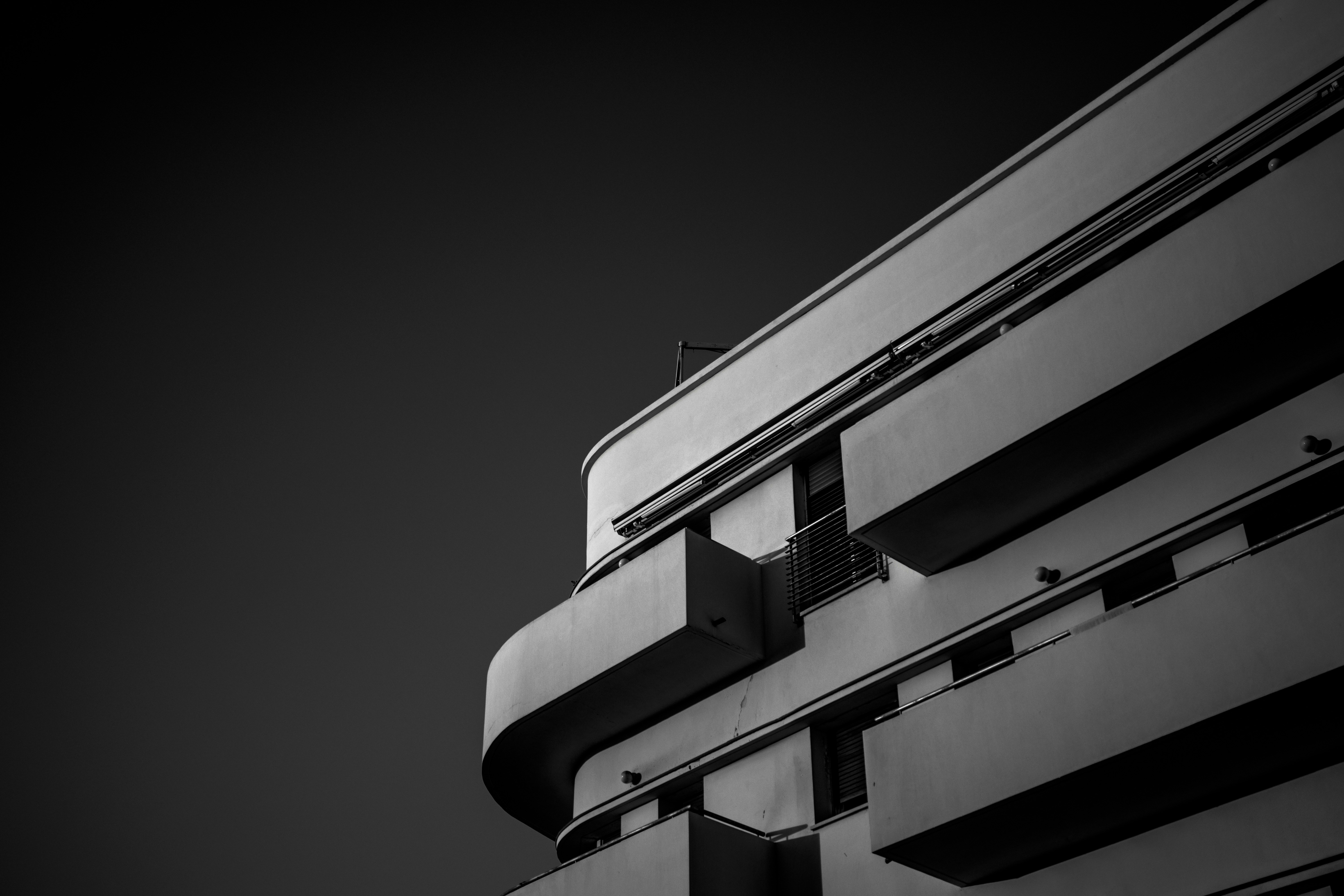Low Angle Grayscale Photo Of Concrete Building Photo Free Black
