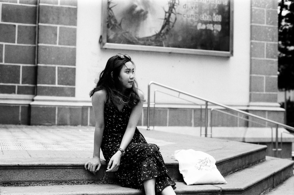 Hd Wallpaper Grayscale Photo Of Person Sitting On Stair