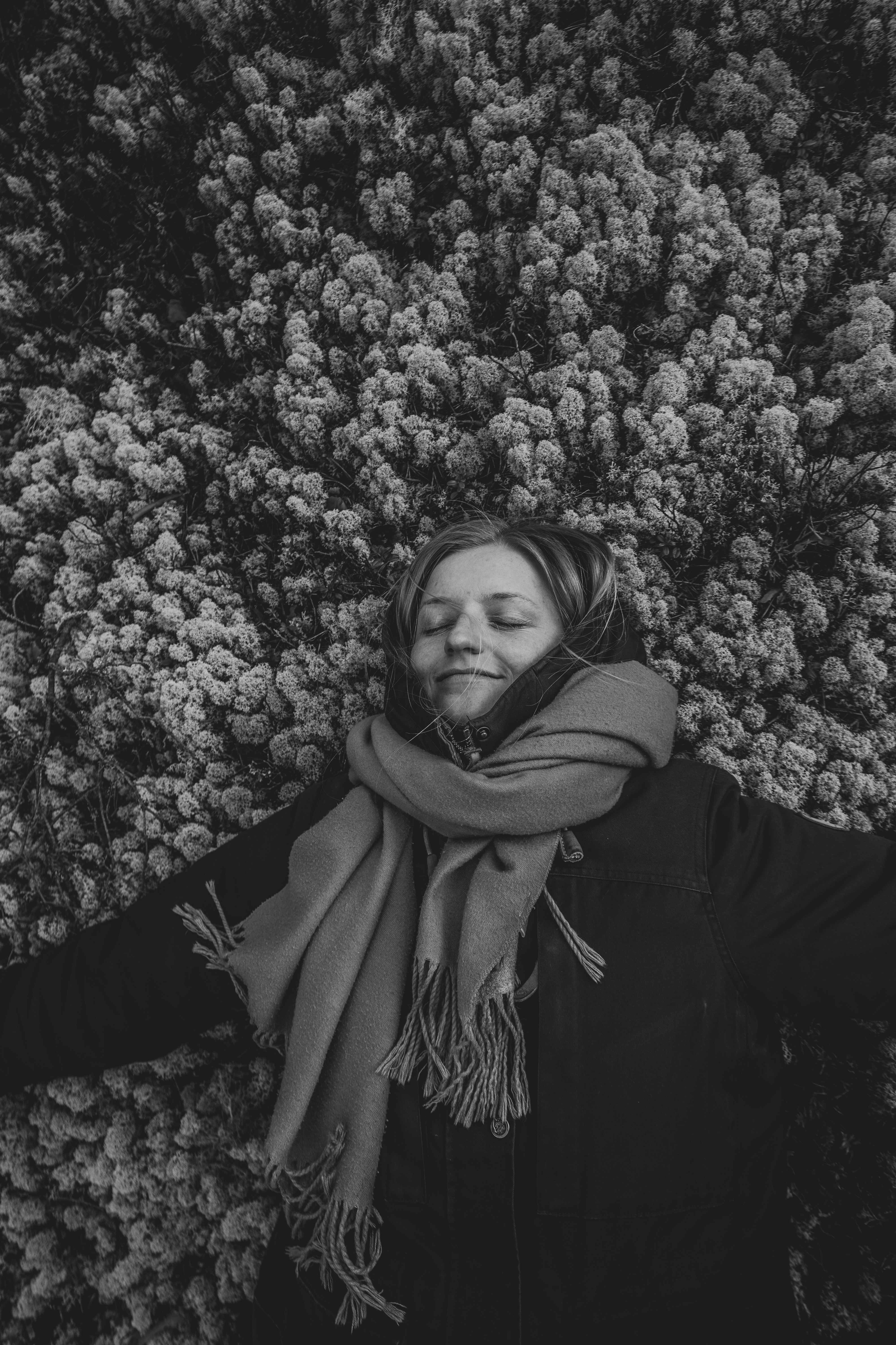 Grayscale Photo Of Woman In Scarf And Jacket Photo Free Black