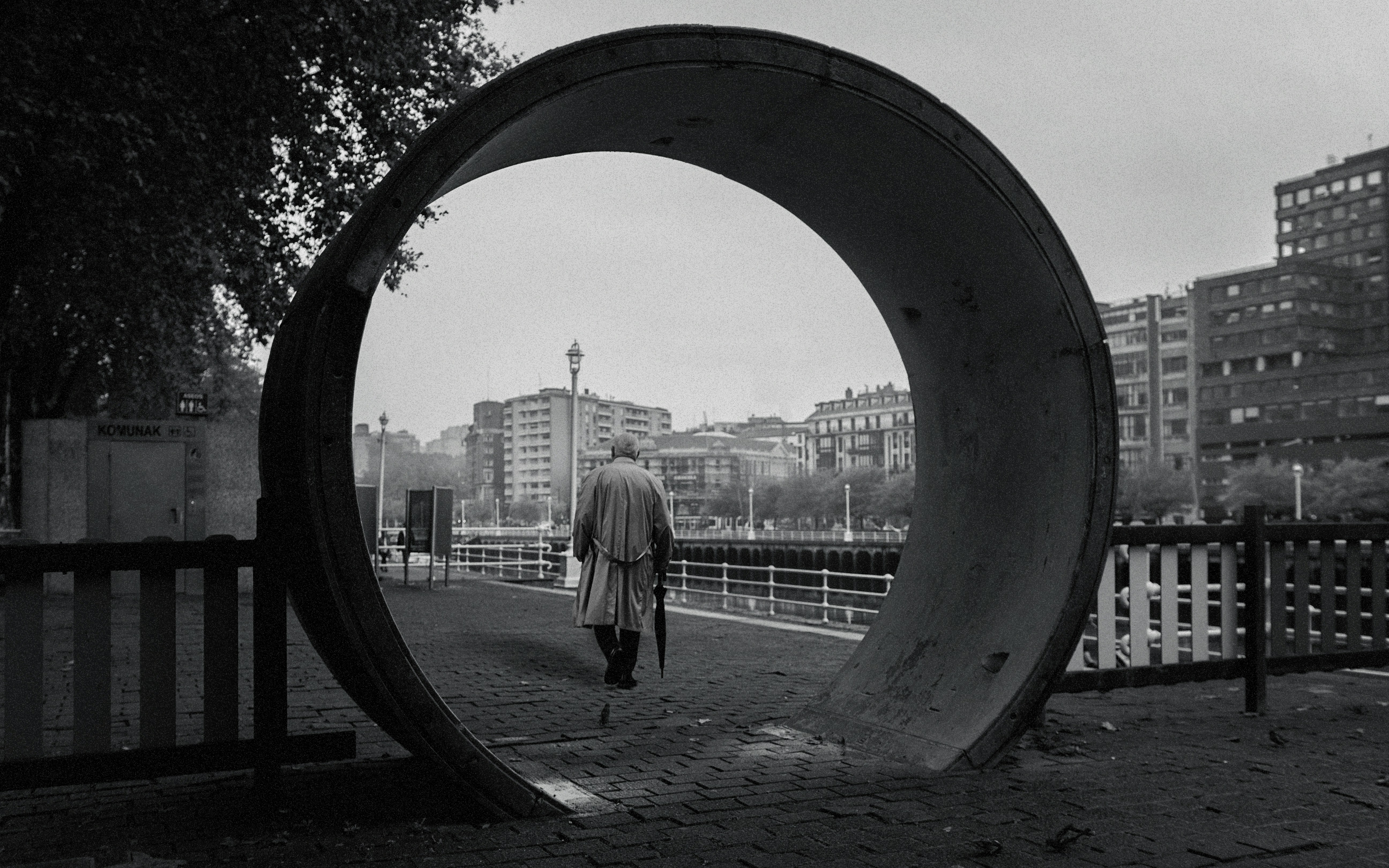 Grayscale Photo Of Person Holding Umbrella Photo Free Black And