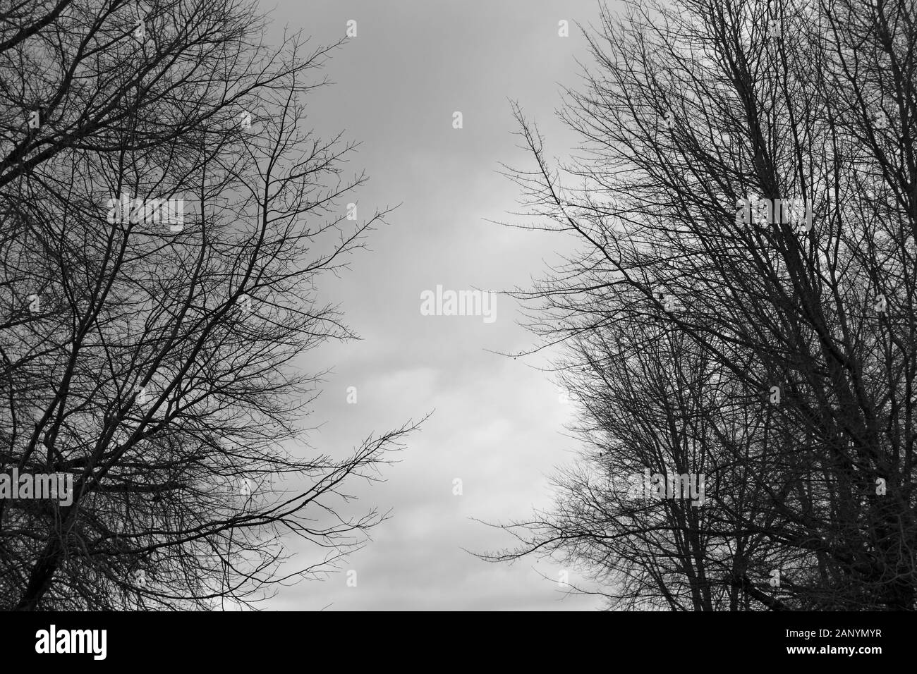 A Low Angle Shot Of Bare Trees Under The Dark Sky Great For Cool