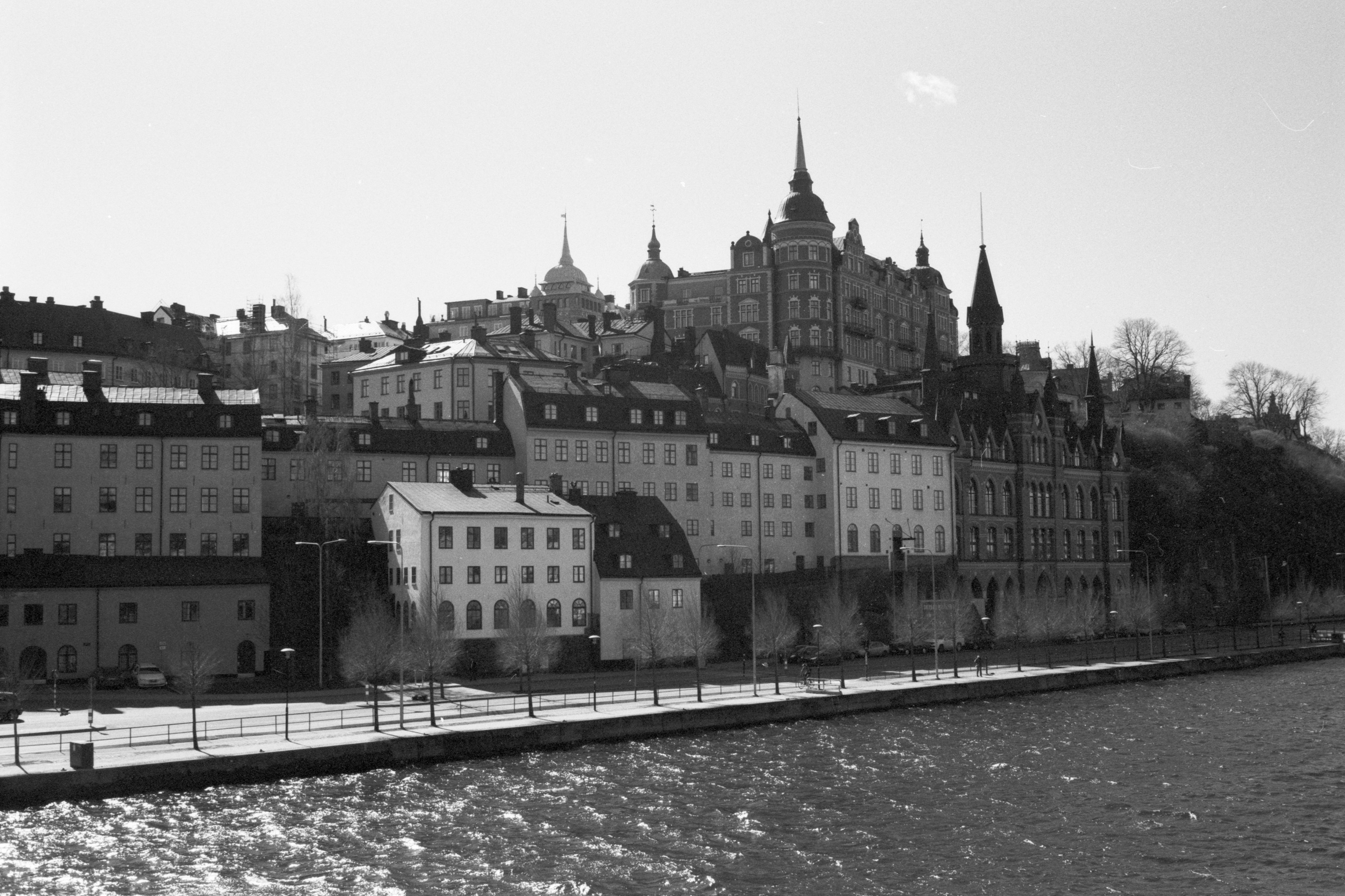 Grayscale Photo Of Concrete Building Near Body Of Water Photo Free Black And White Image On Unsplash