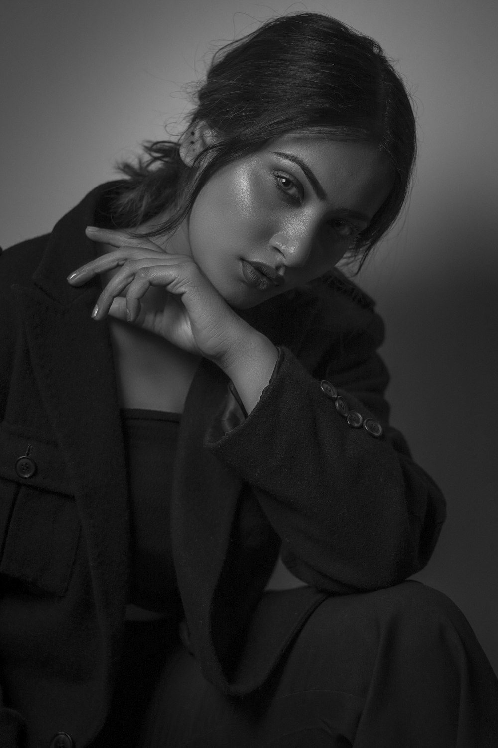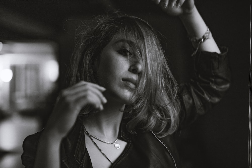 Woman In Jacket In Grayscale Photography Photo Free Black And