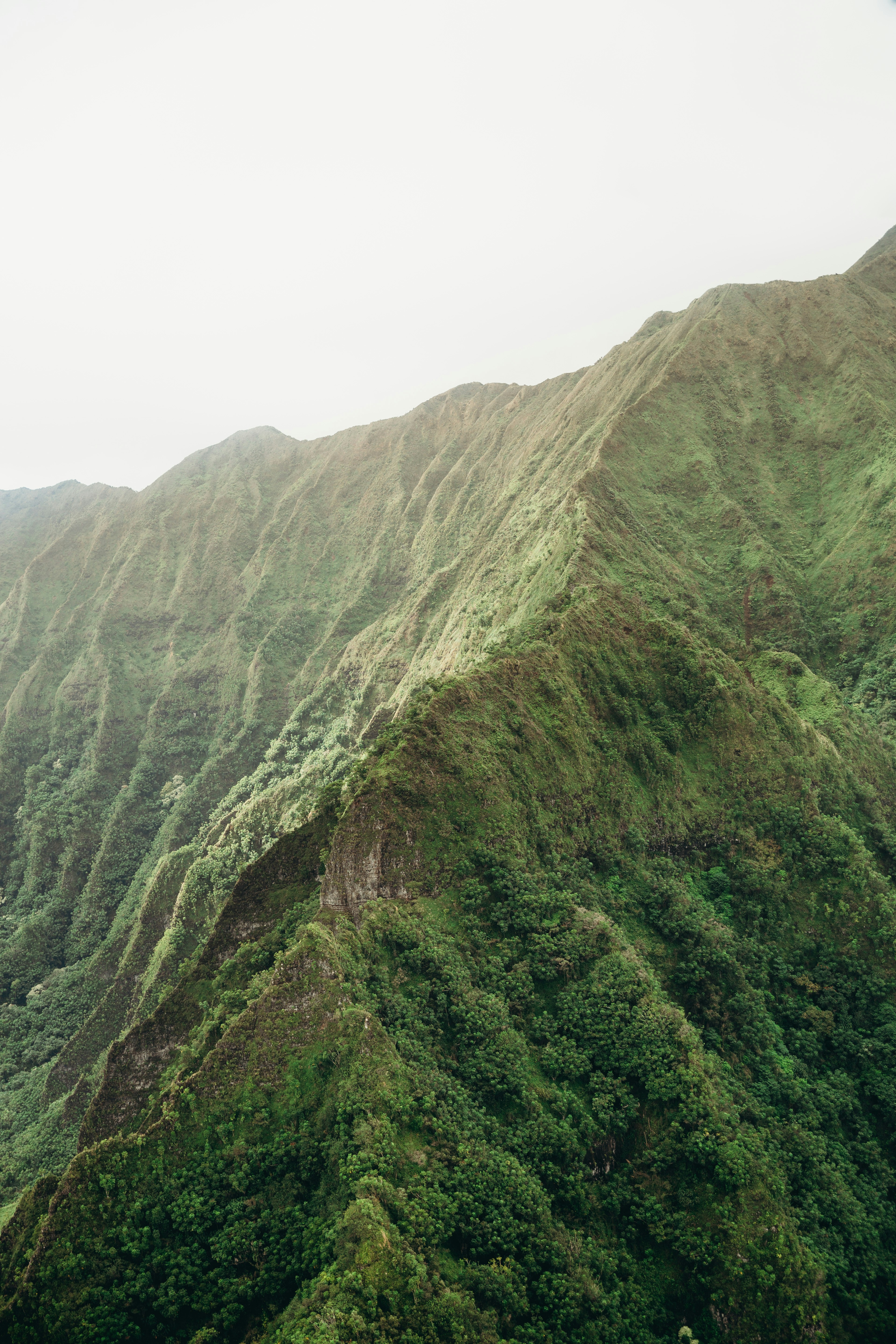 Green And Brown Mountain Under White Sky Photo During Daytime