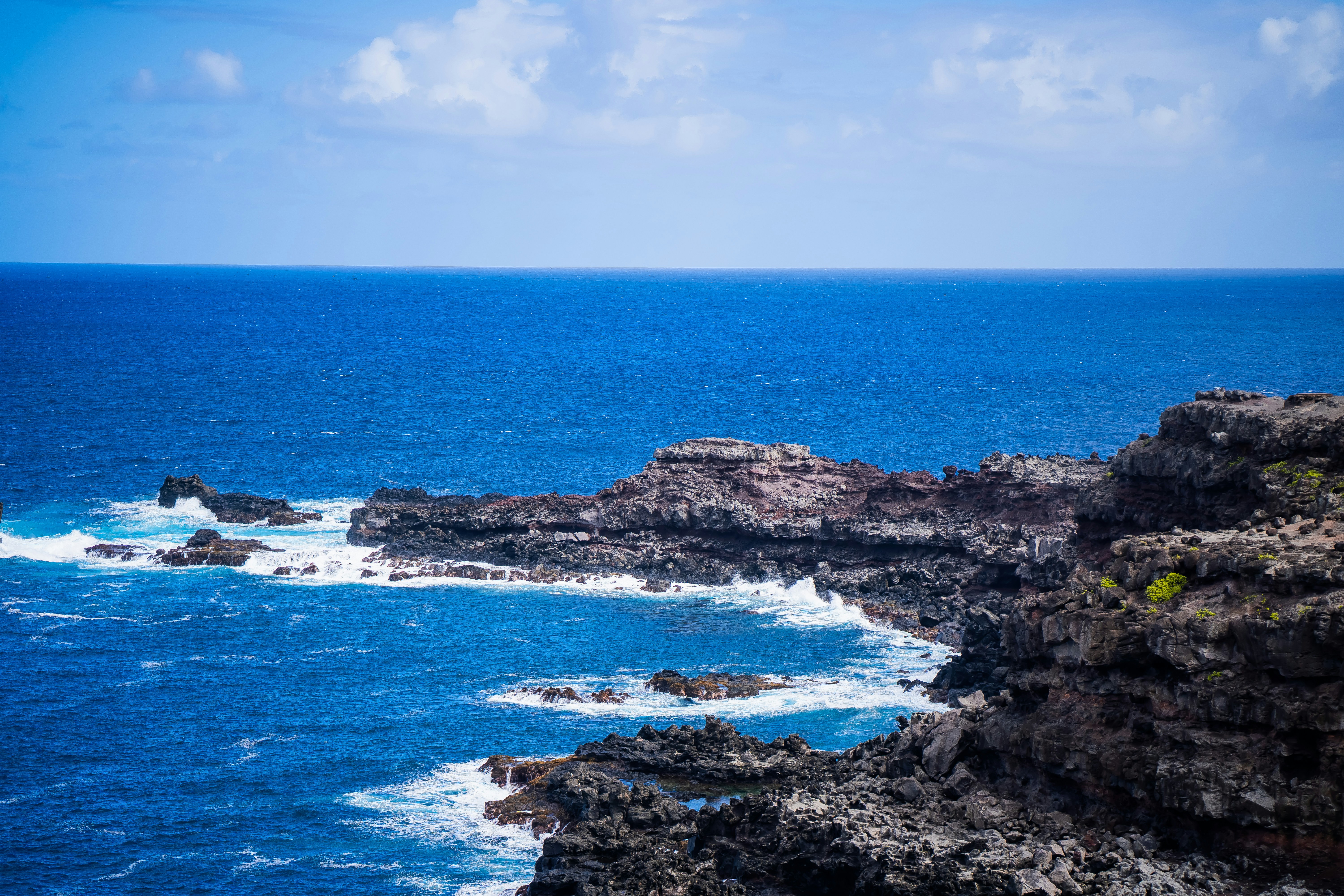 Gray Beach Cliff Viewing Blue Sea Under White And Blue Sky Photo