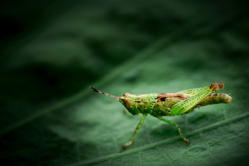 Hd Wallpaper Green Grasshopper On Green Leaf Shallow Focus