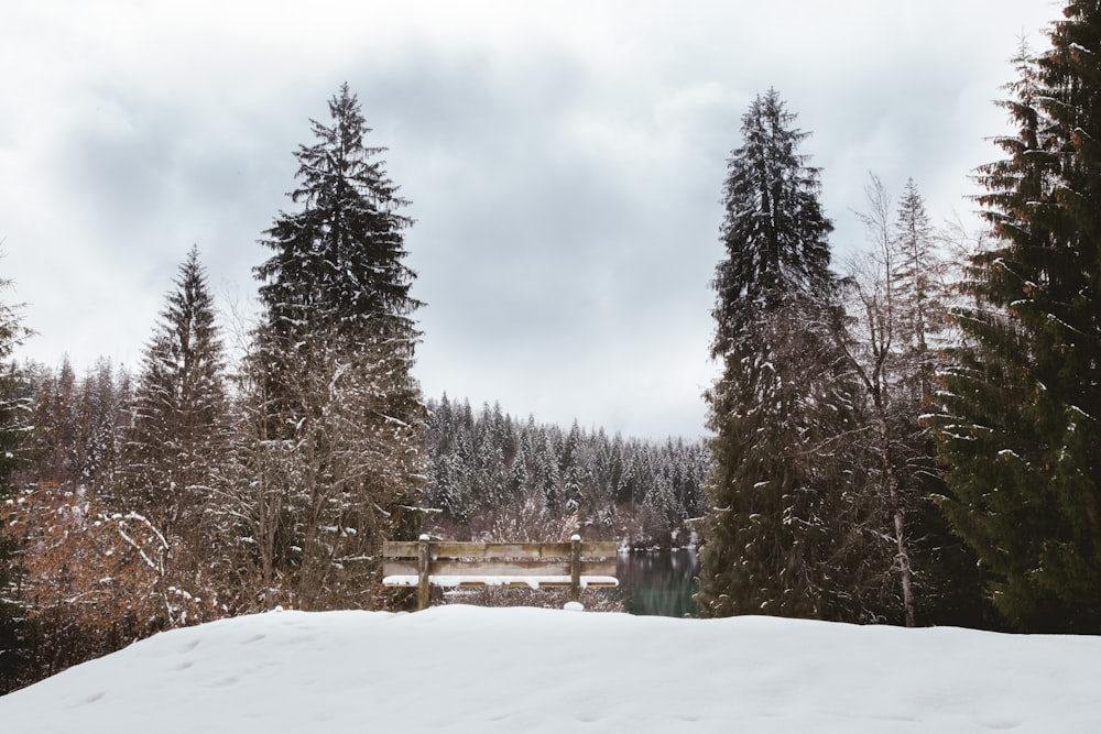 Green Pine Trees Forest Surrounded By Snow Pile Free Stock Photo