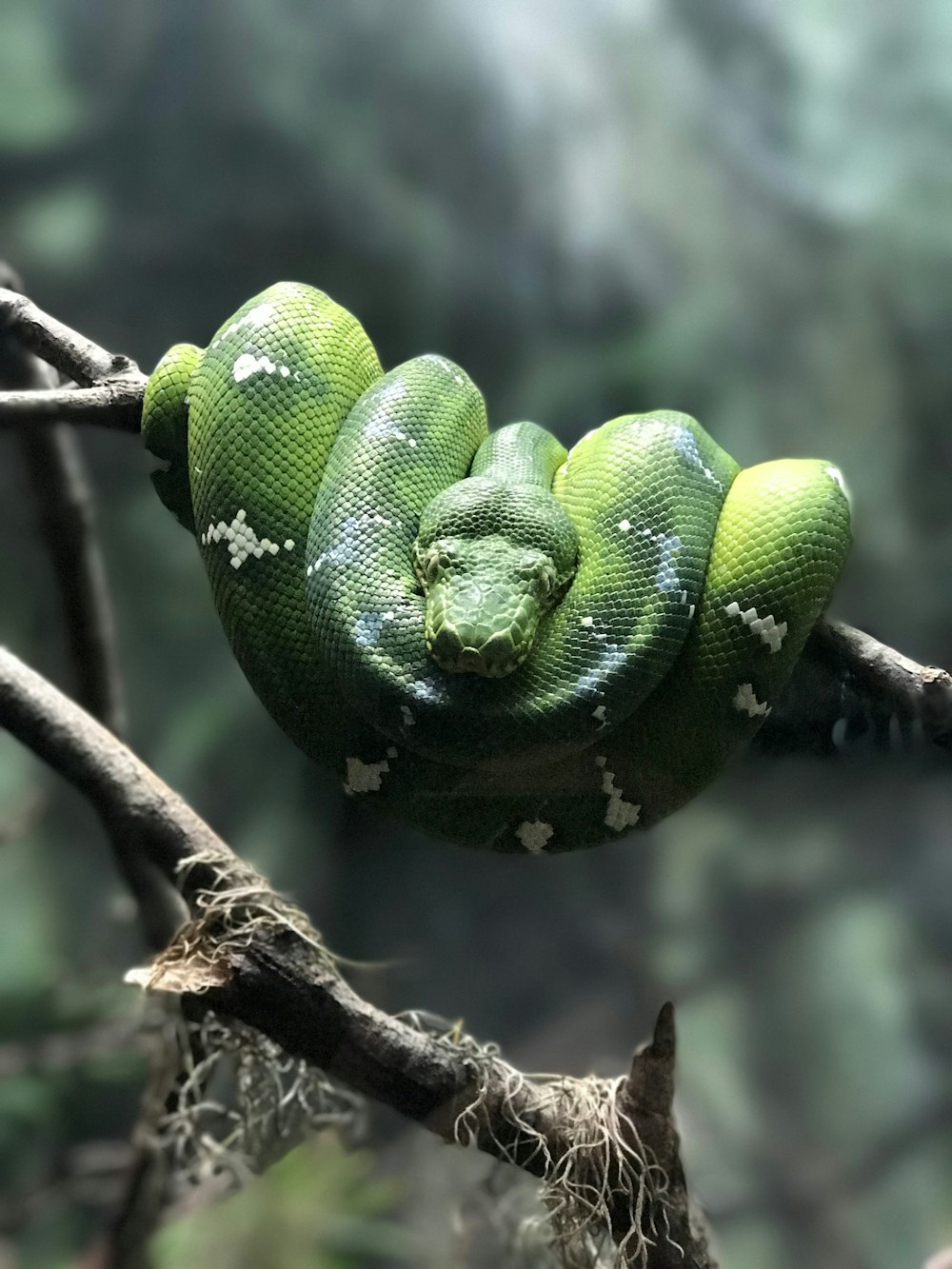 Shallow Focus Photography Of Green Snake In Tree Branch Photo