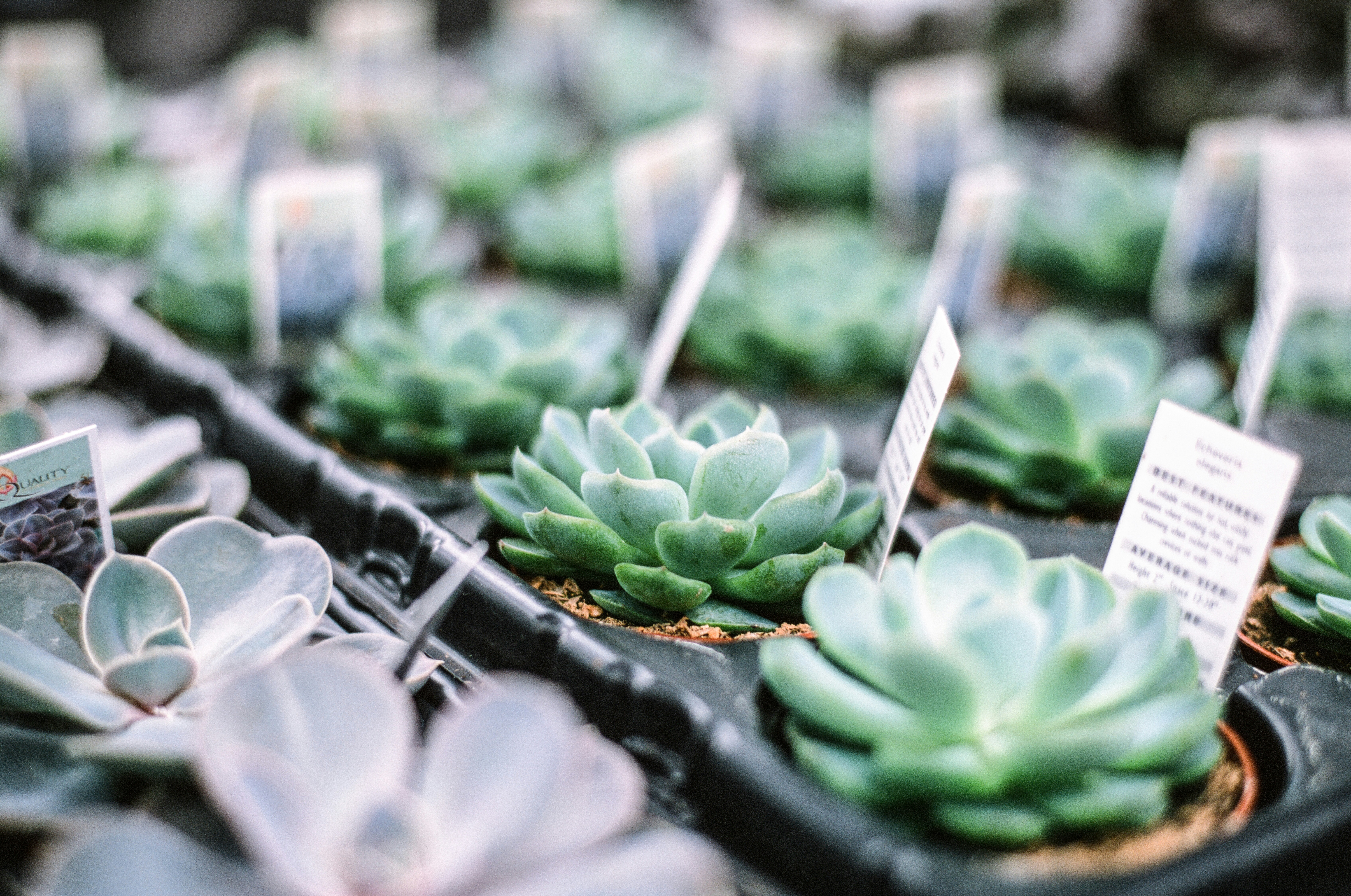 Green Succulent Plants In Black Plastic Pots Photo Free Plant