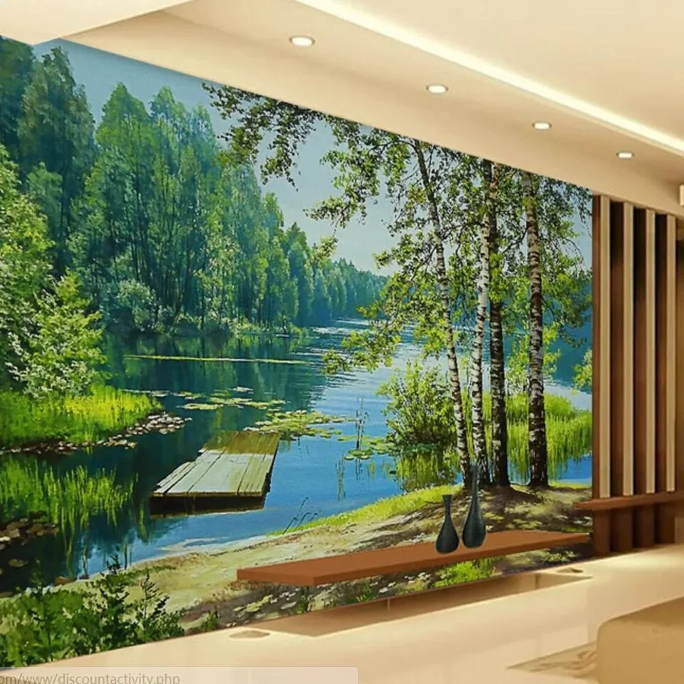3d Hd Photo Green Tree Lake Mural Wallpaper For Living Room