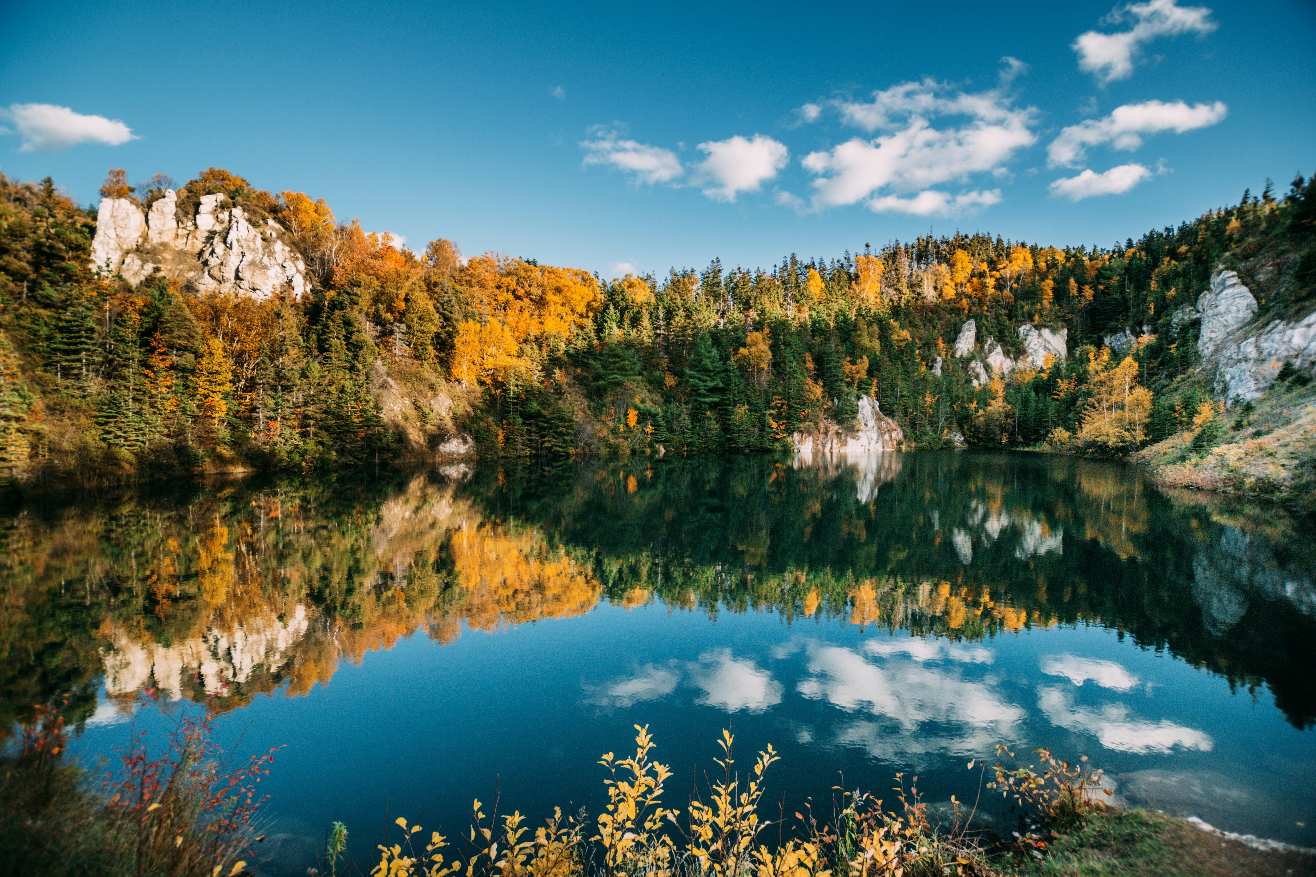 Green Trees Near Body Of Water Under Blue Sky Photo Free Nature
