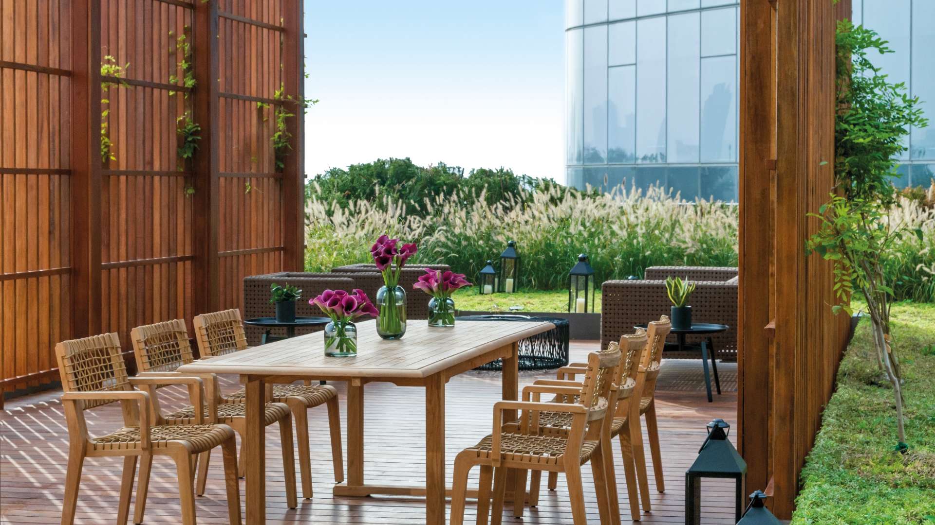 Wooden Table And Chairs In A Ornamental Garden Collection