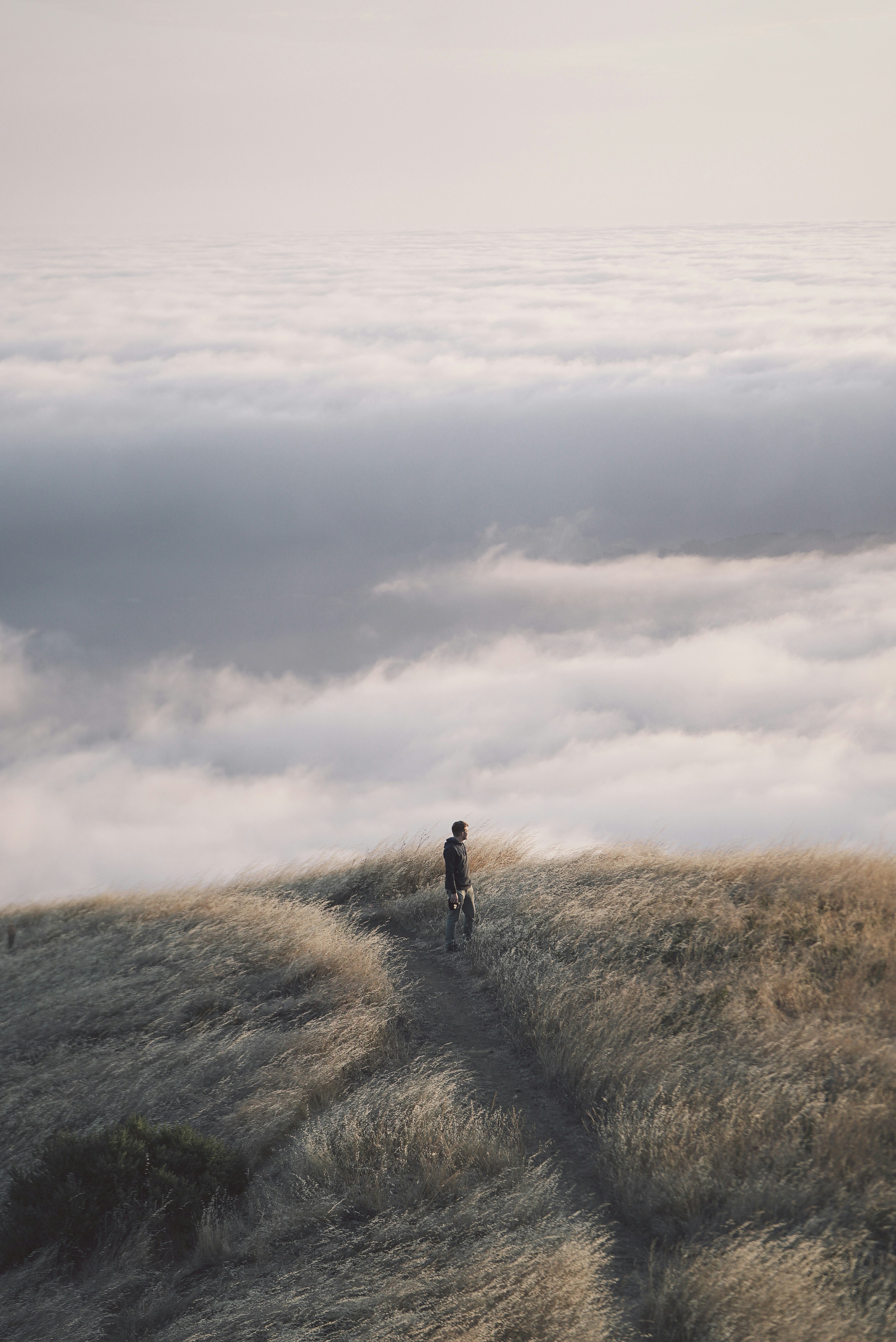 Person Near Sea Of Clouds Photo Free Grey Image On Unsplash
