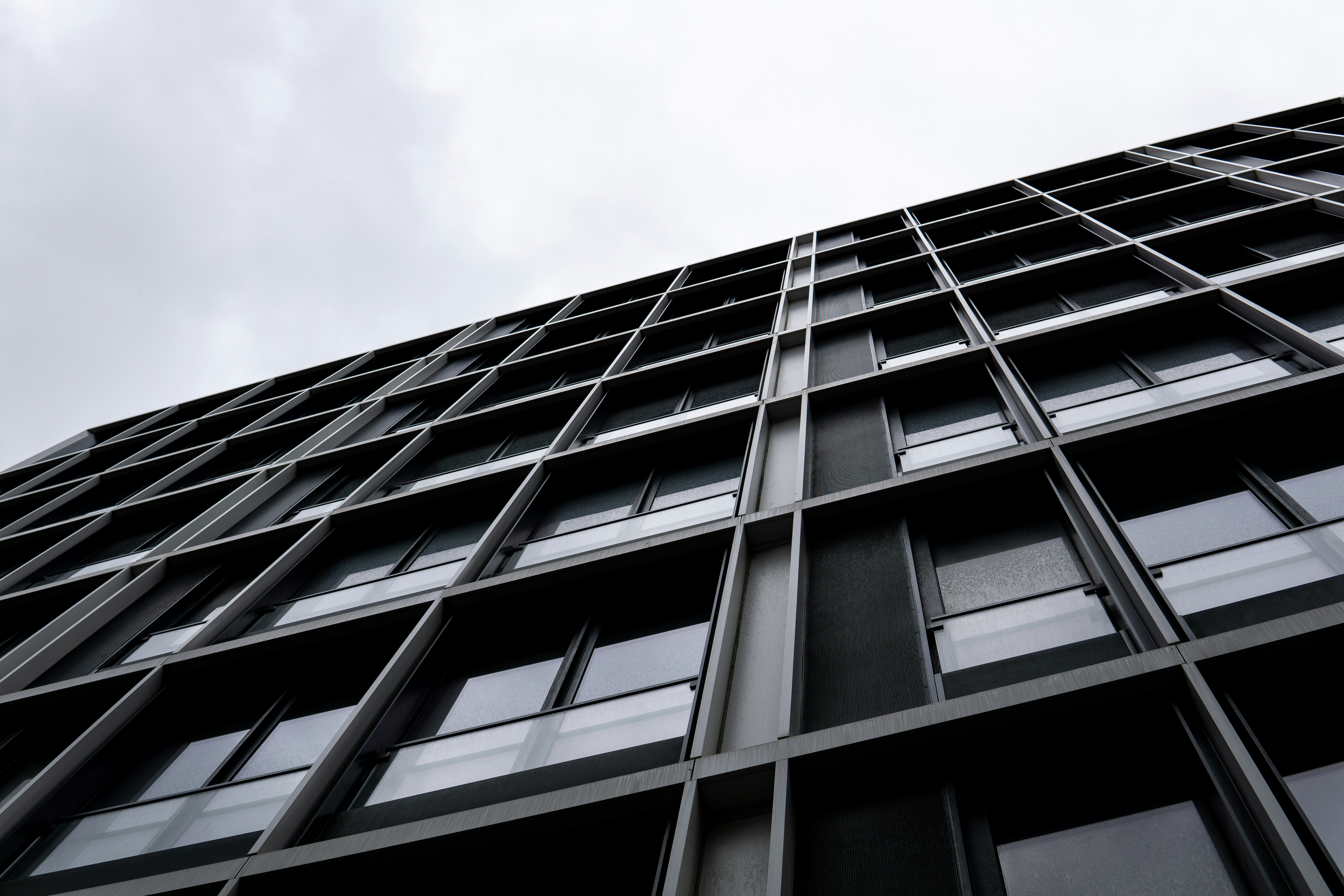 Low Angle Grayscale Photo Of Concrete Building Photo Free Black