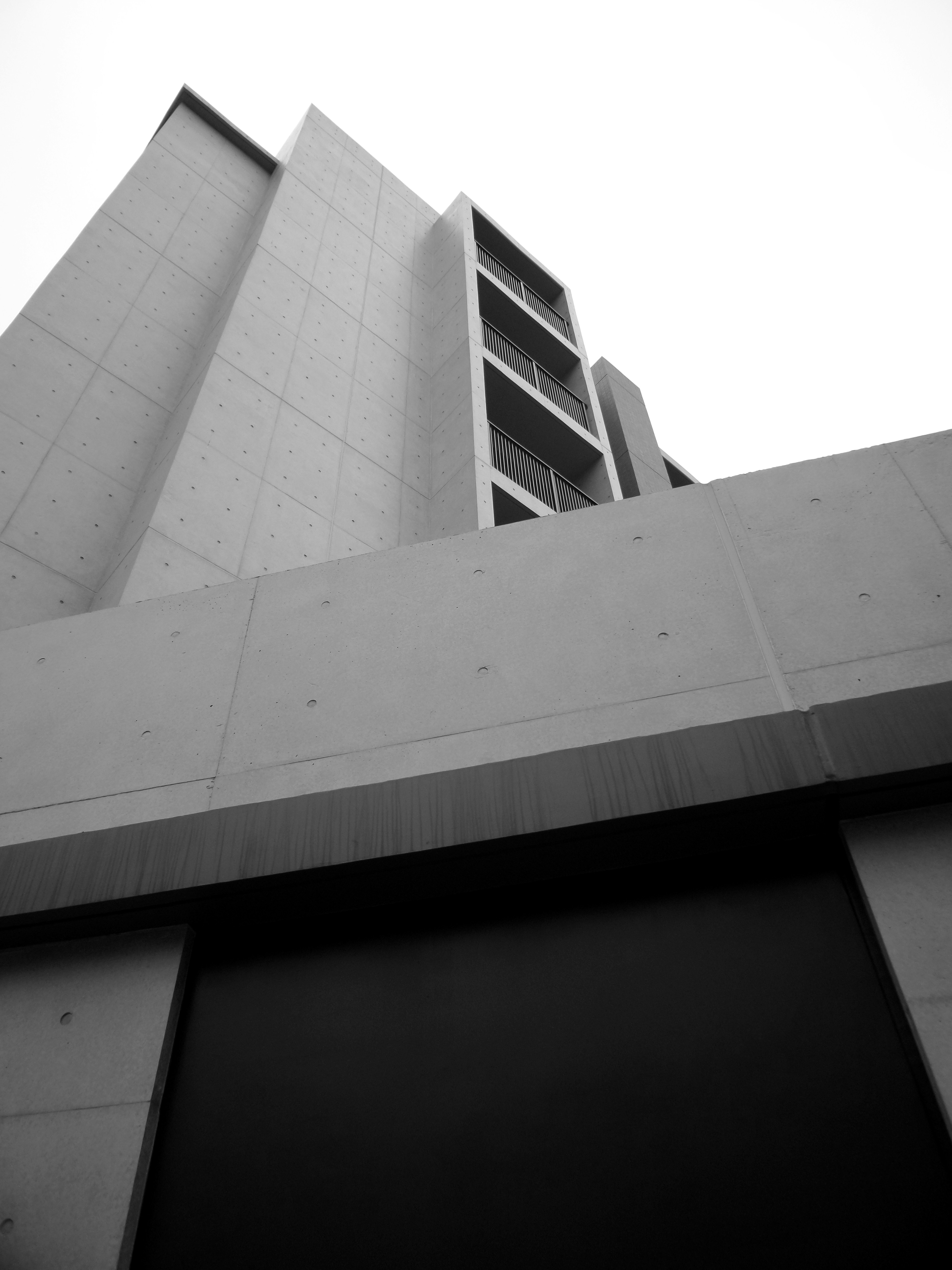 Low Angle And Grayscale Photo Of Concrete Building Free Stock Photo