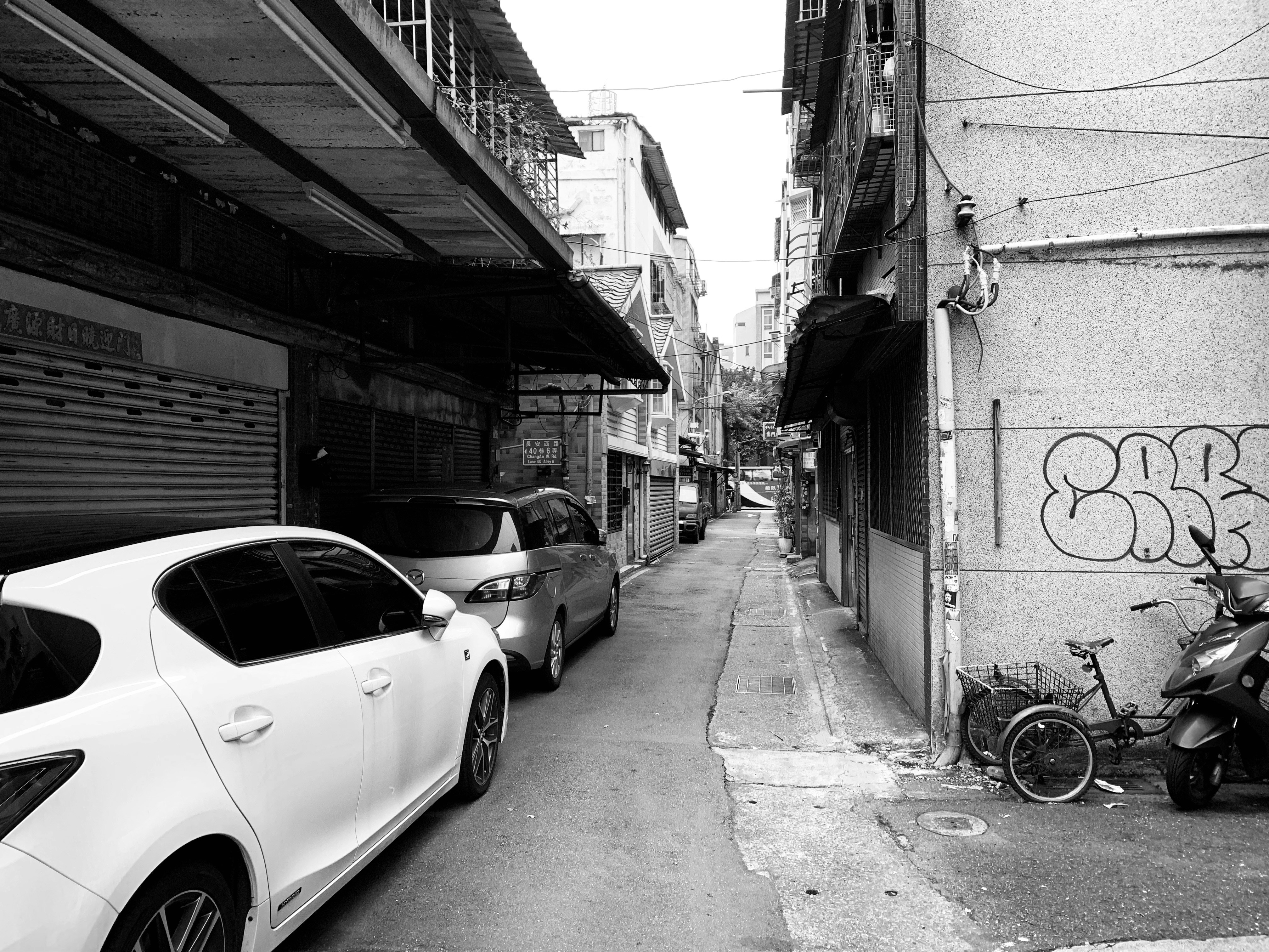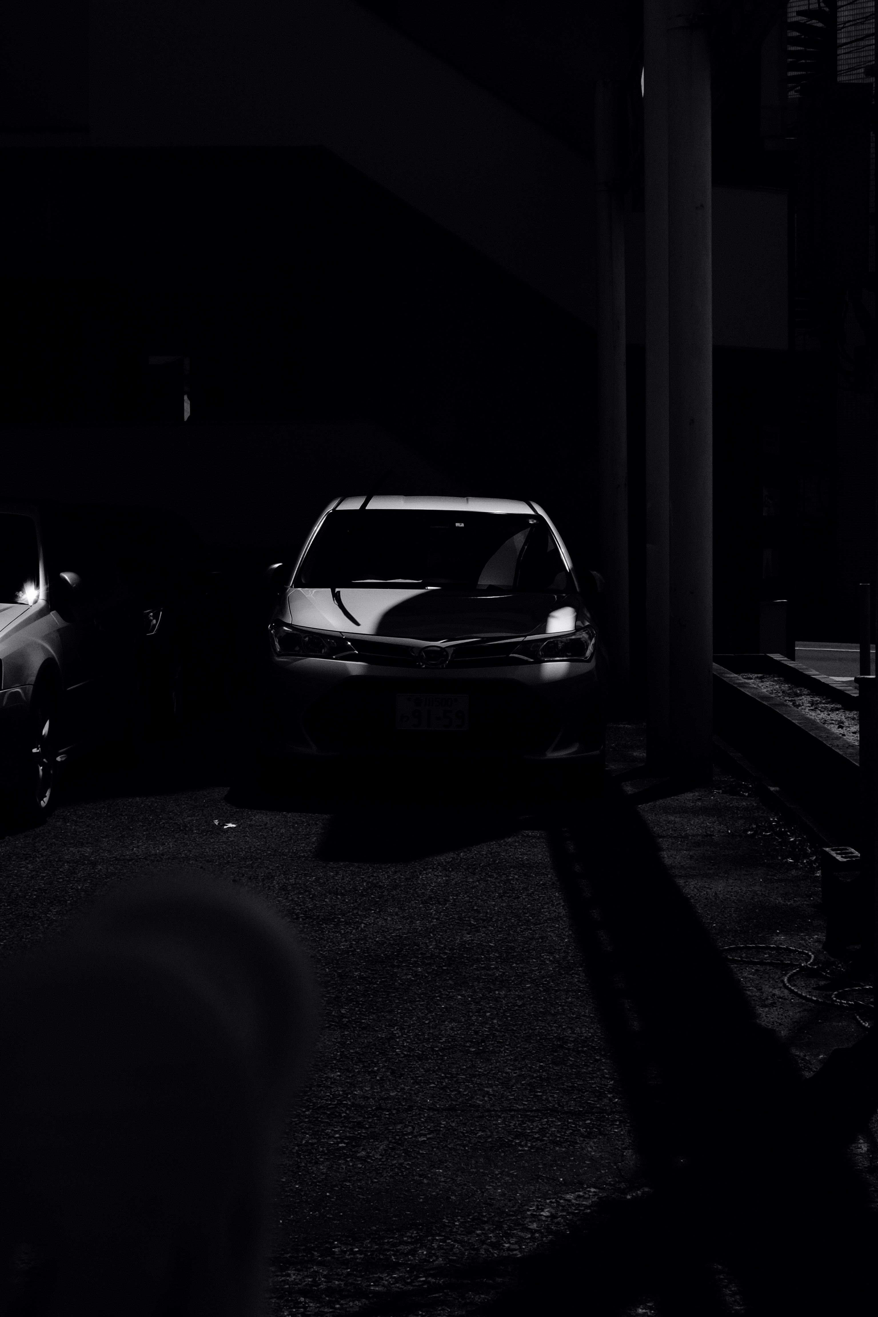 Grayscale Photo Of Car Parked Beside Building Photo Free