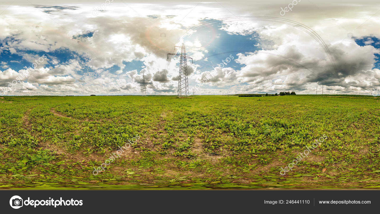 Panorama 360 Degrees Angle View High Voltage Electric Pylon Towers